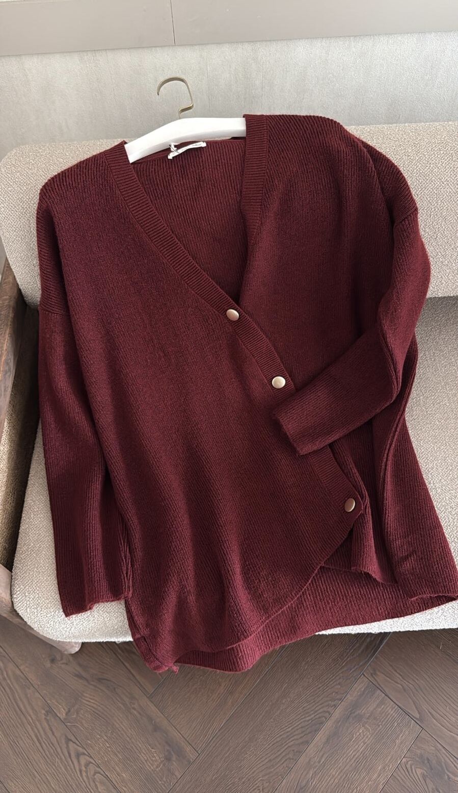 Asimetrik Önden Düğmeli Hırka (Bordo)