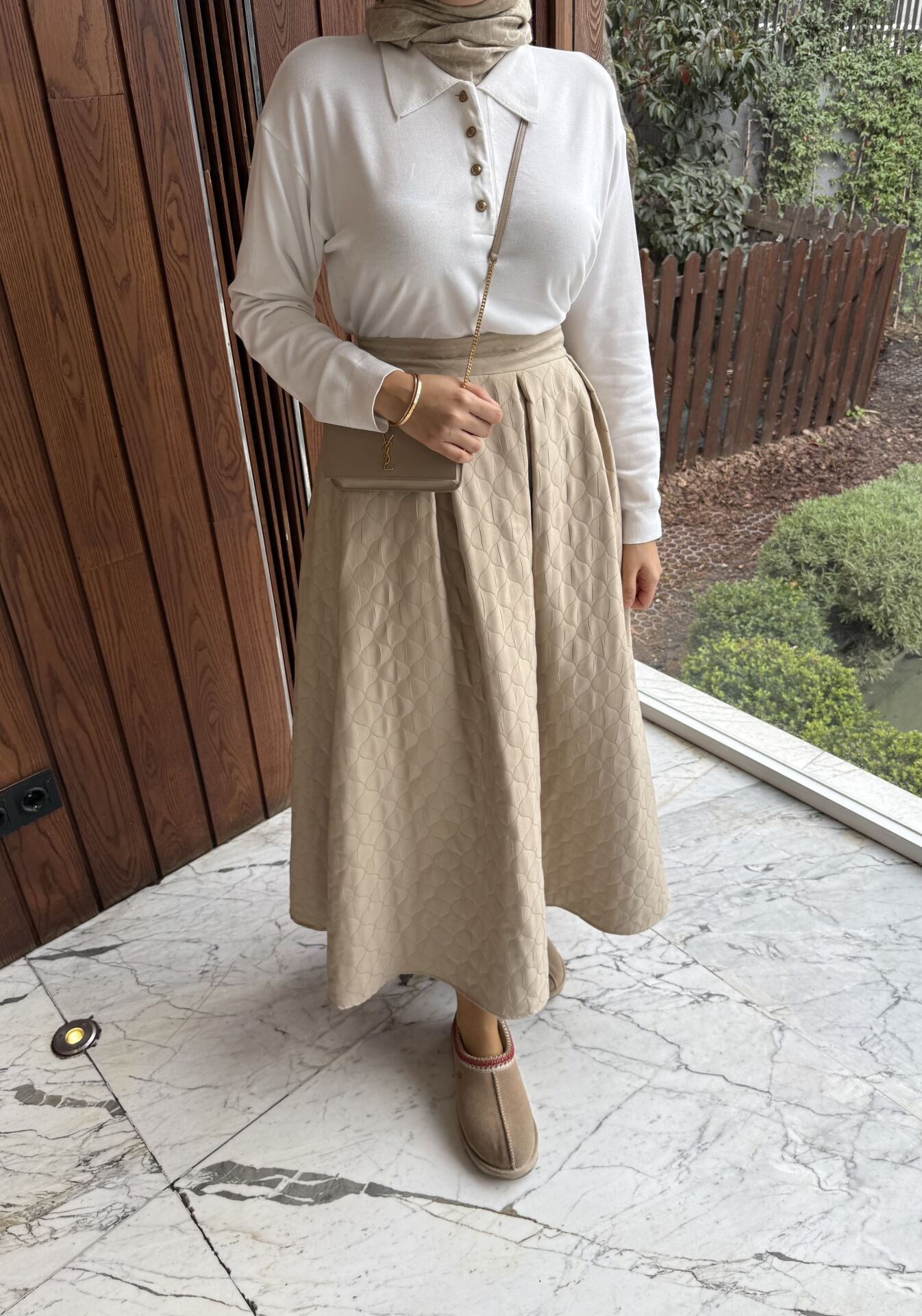 Manken boyu 170 cm, 38 beden ile çekimlerde 1 beden tercih edildi