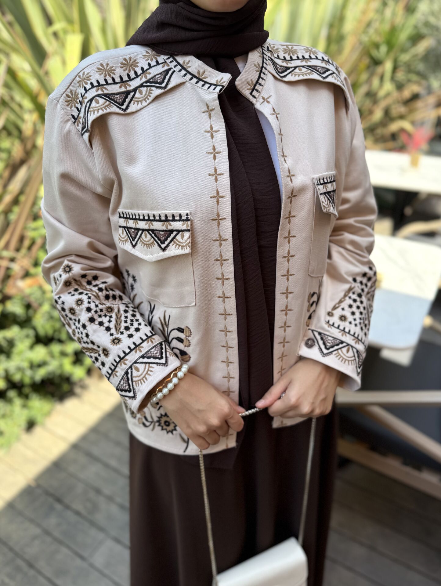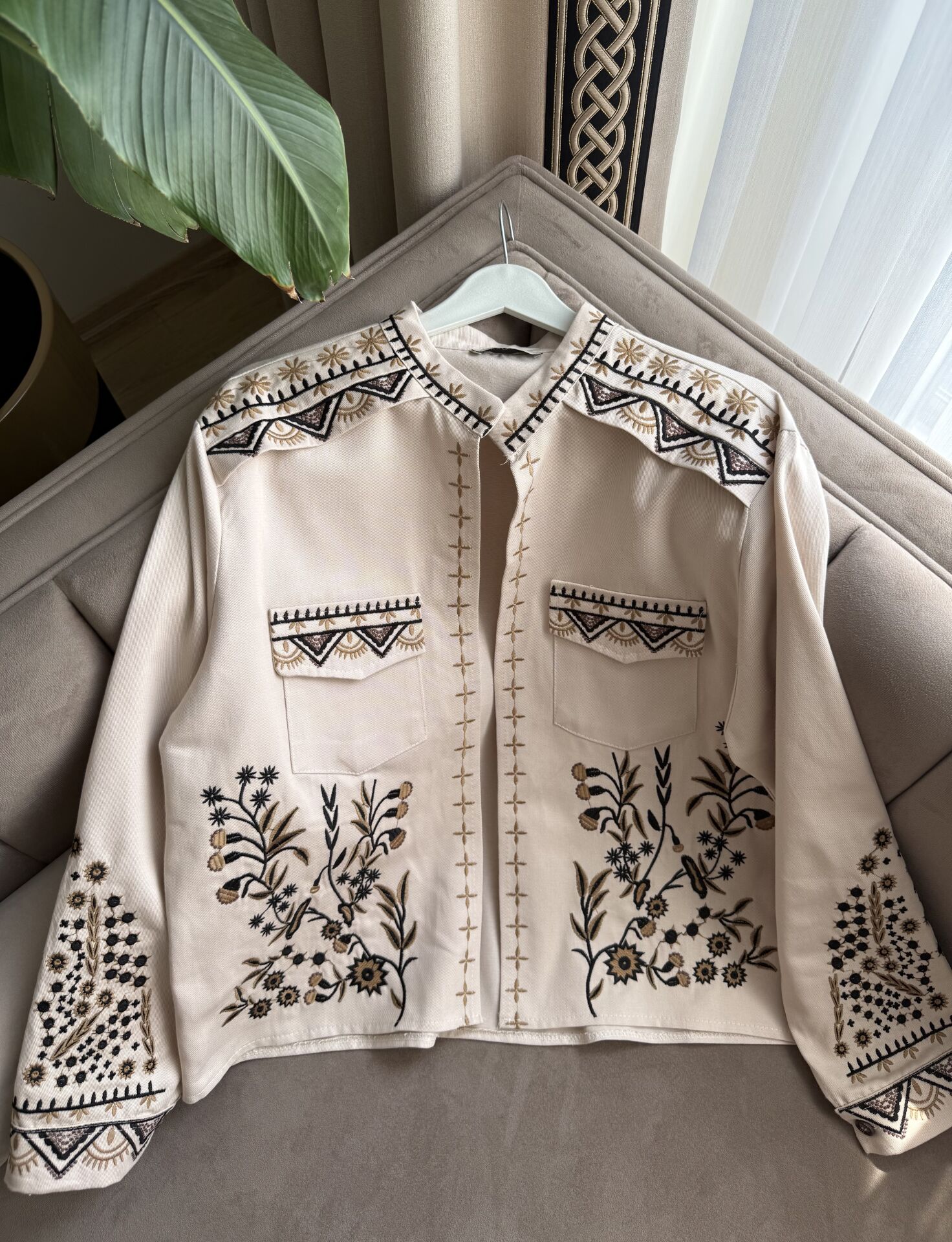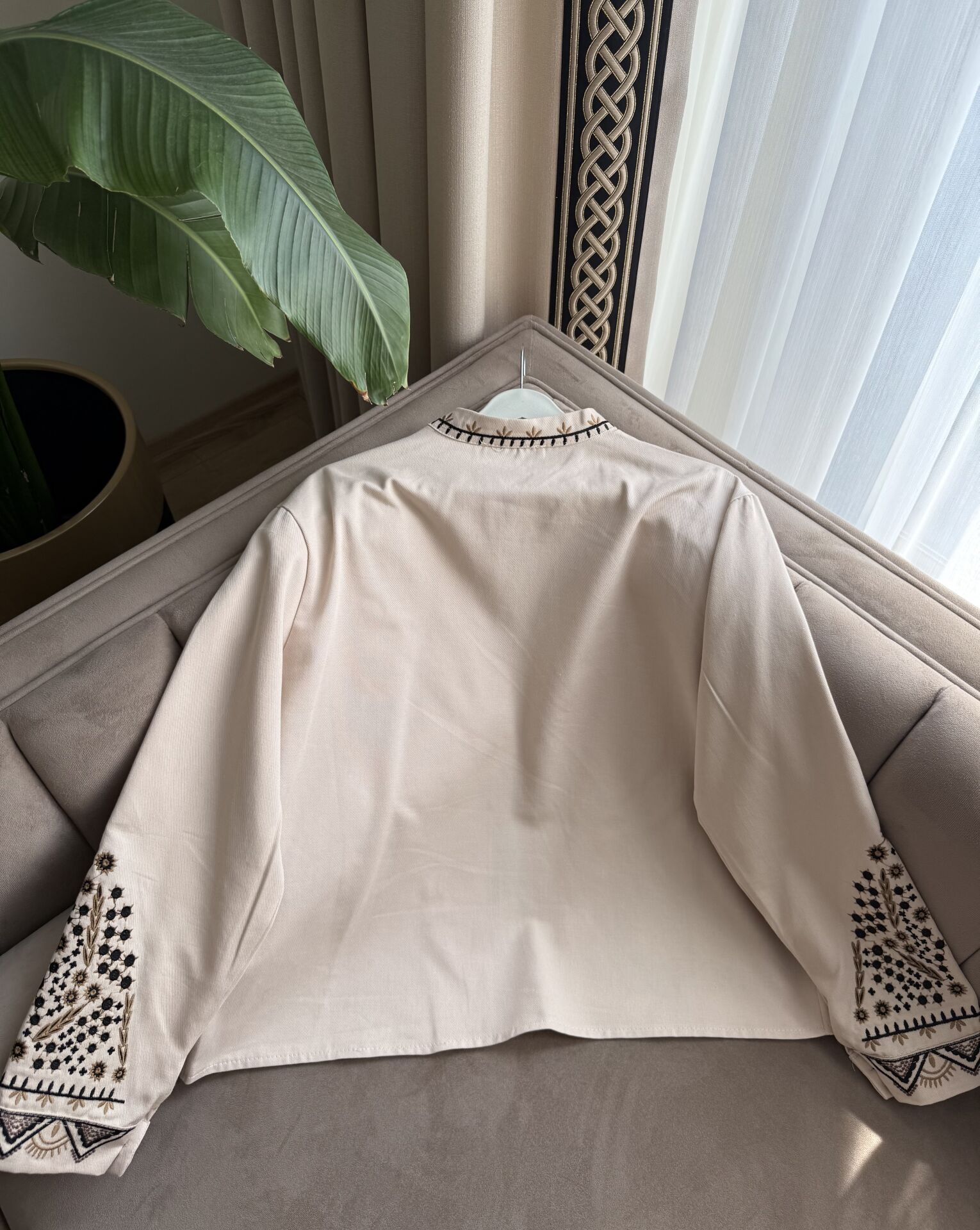 Çift Cepli Nakışlı İnce Gabardin Ceket