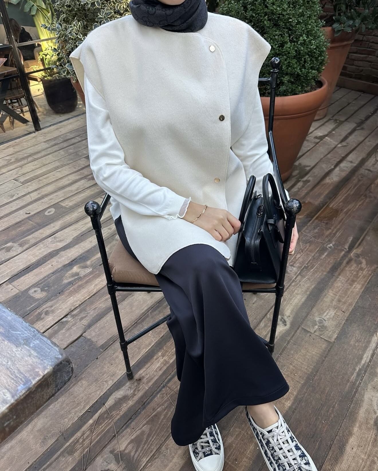 Çıt Çıtlı Kaşe Yelek (Ekru)