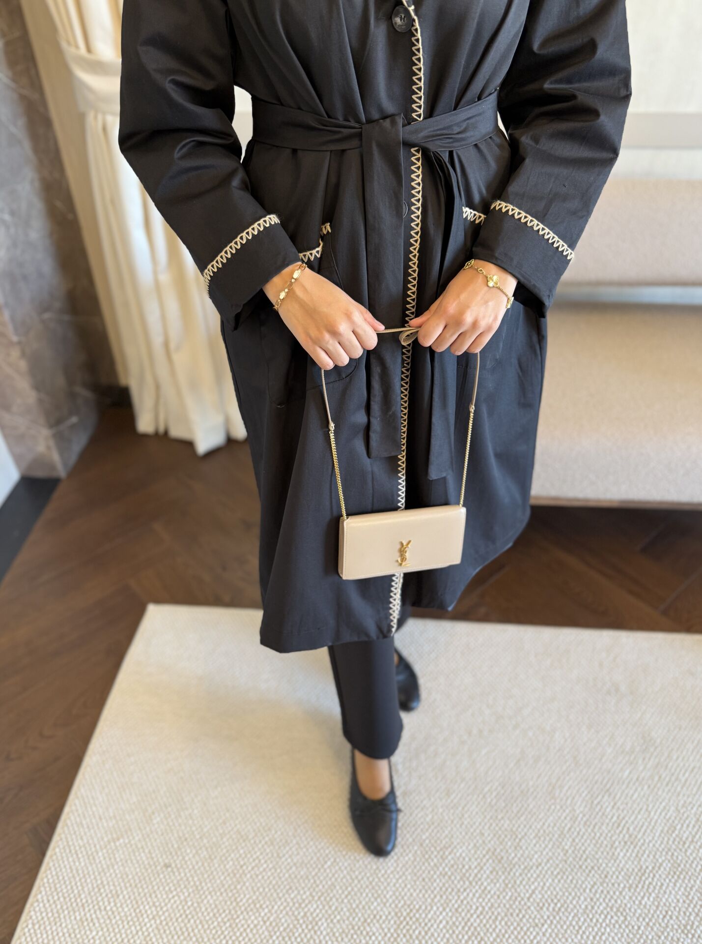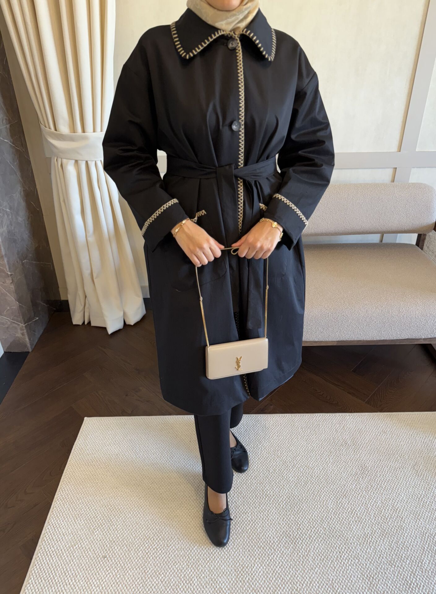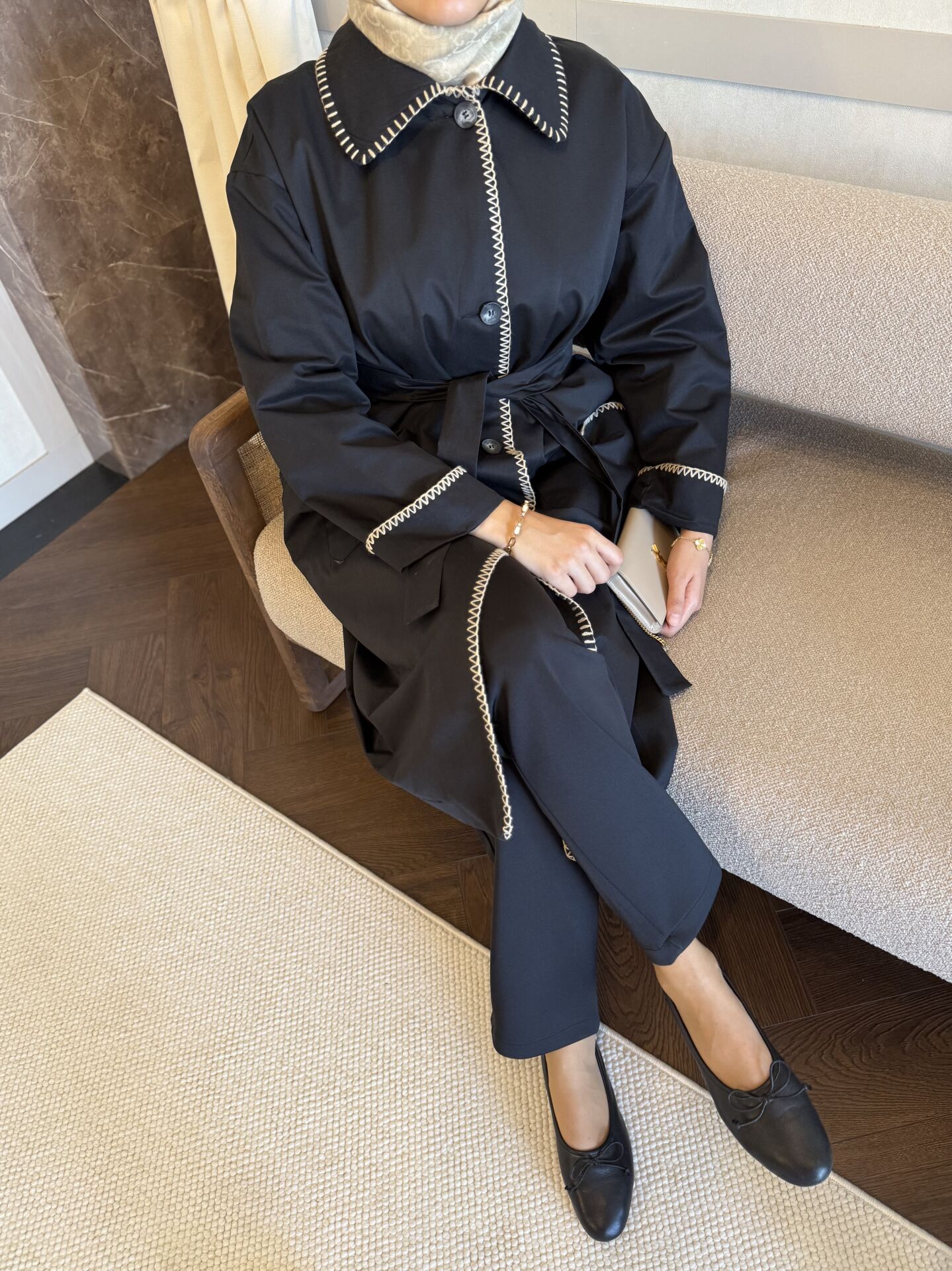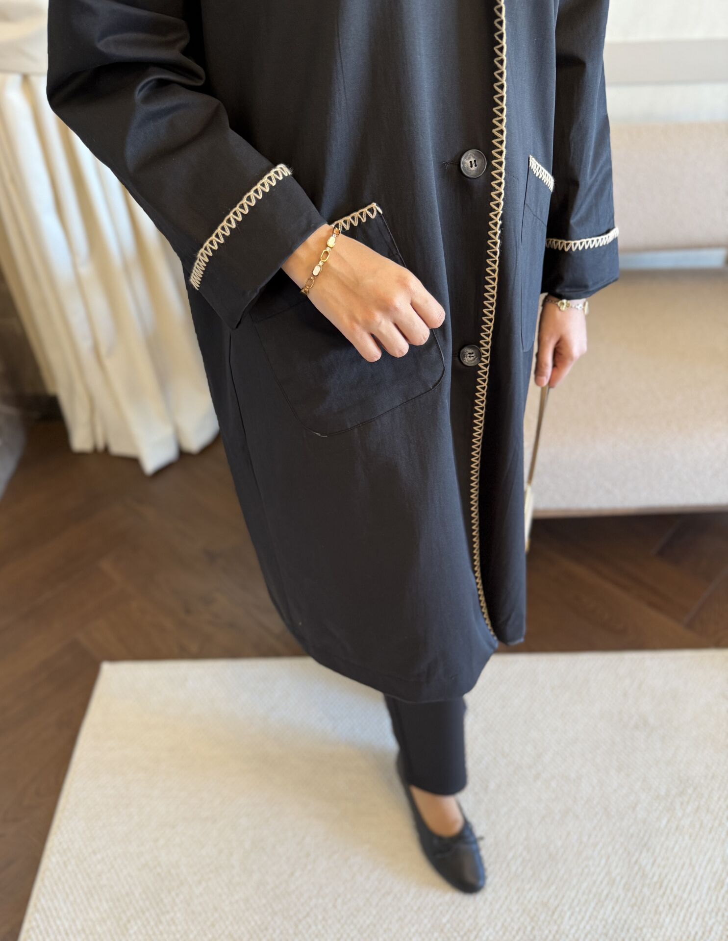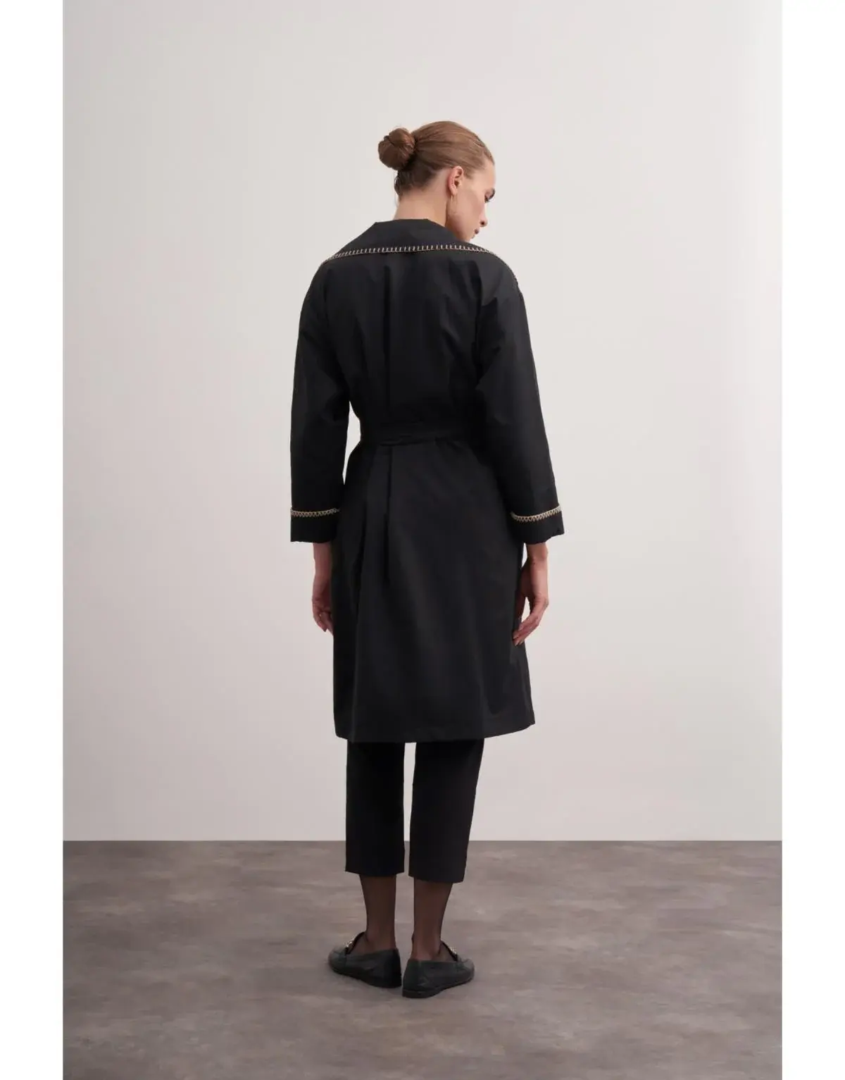 Çoban Dikişli Trençkot (Siyah)