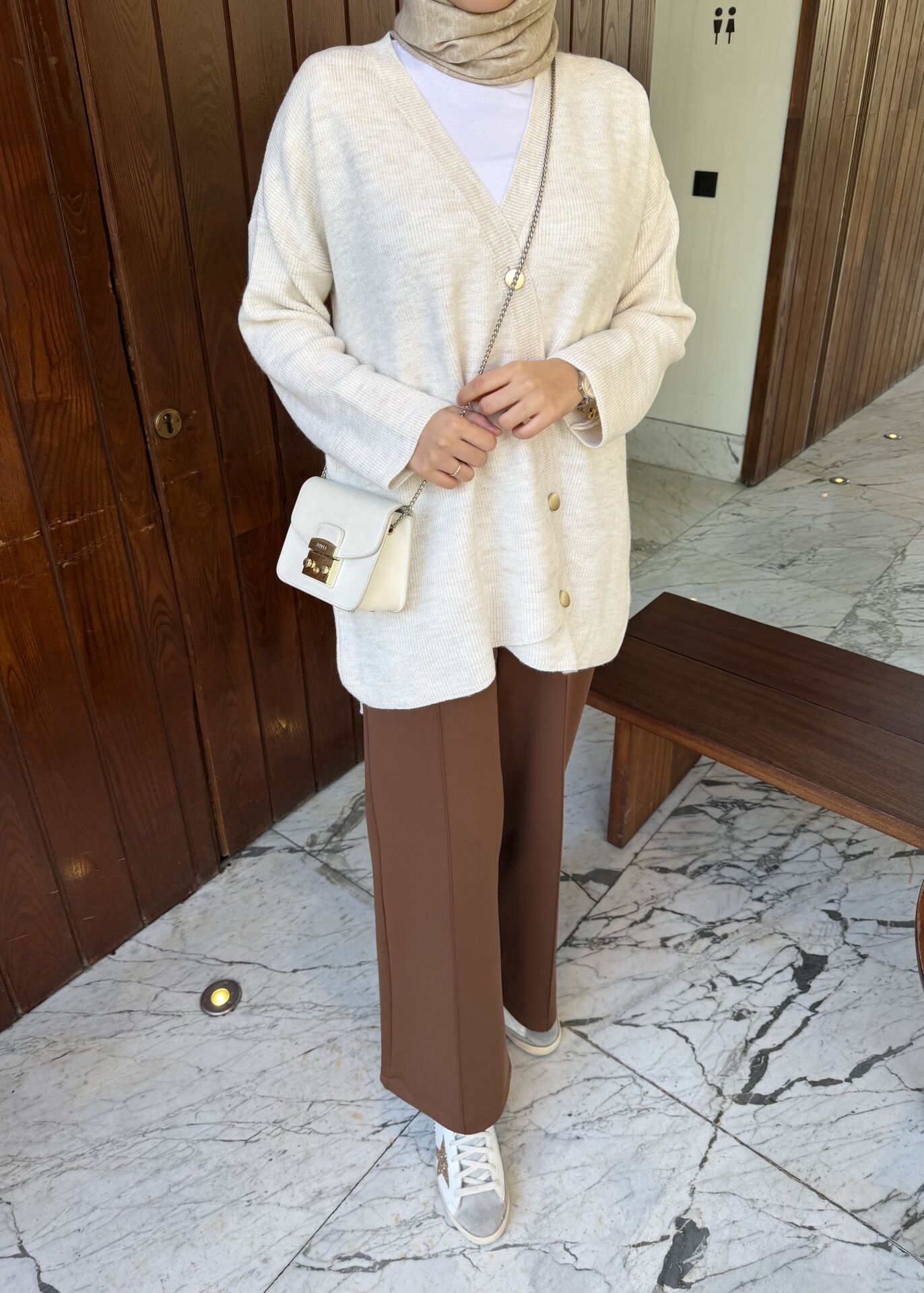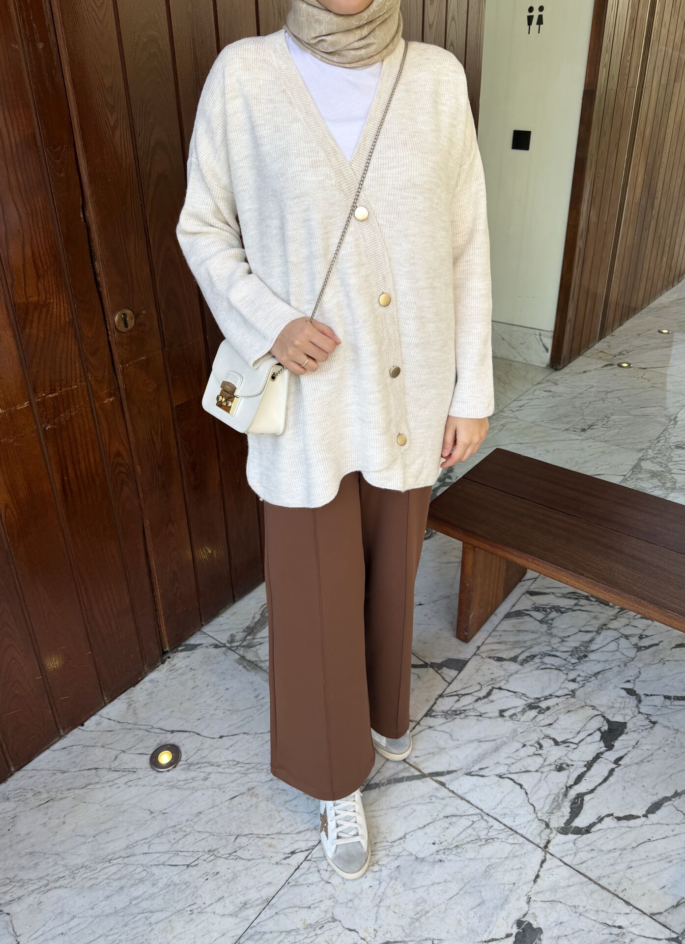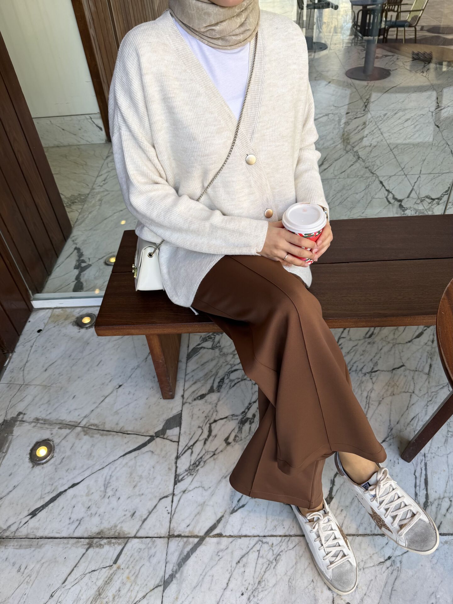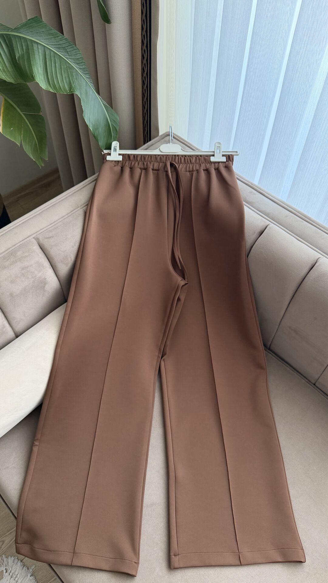 Dikiş İzli Scuba Bol Paça Pantolon (Kahverengi)