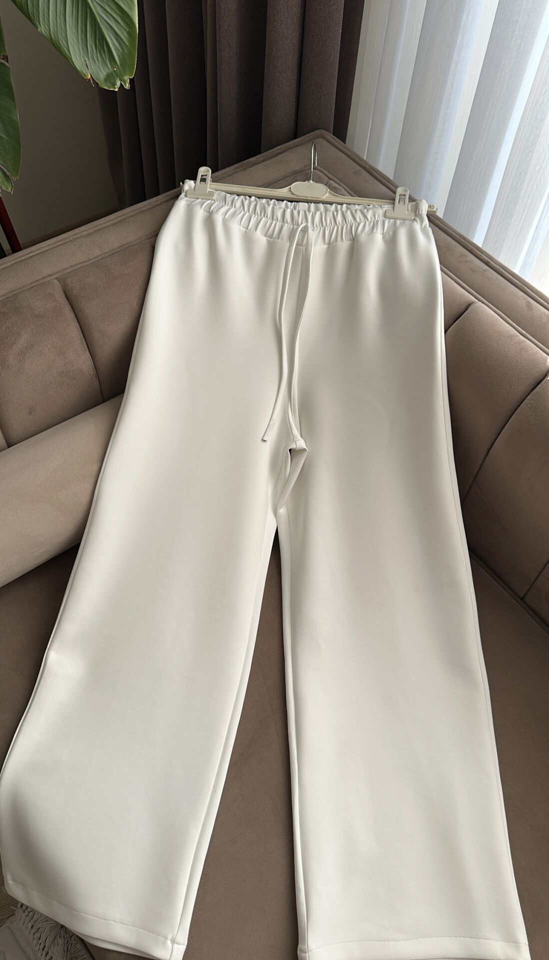 Düz Bol Paça Scuba Pantolon (Beyaz)