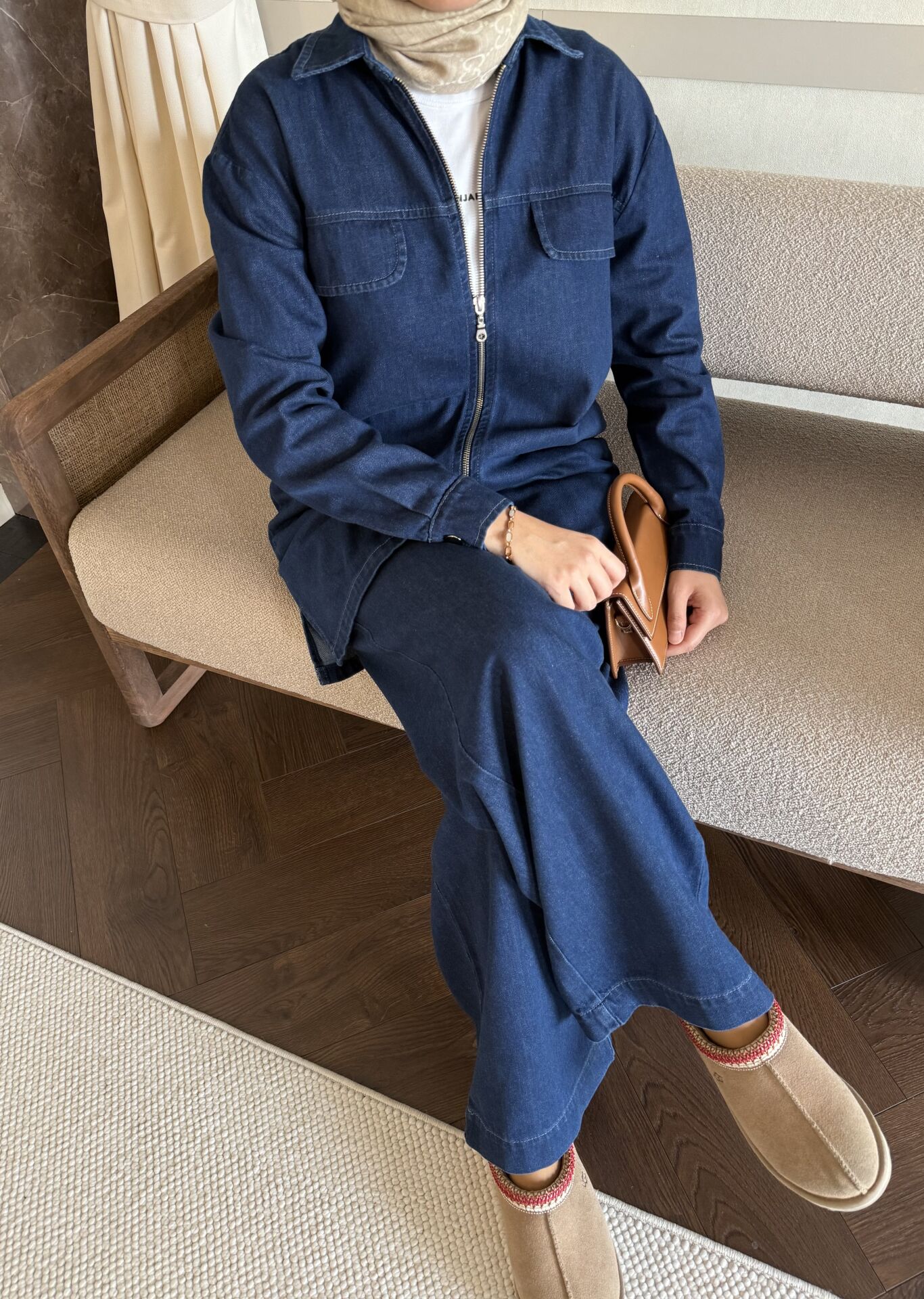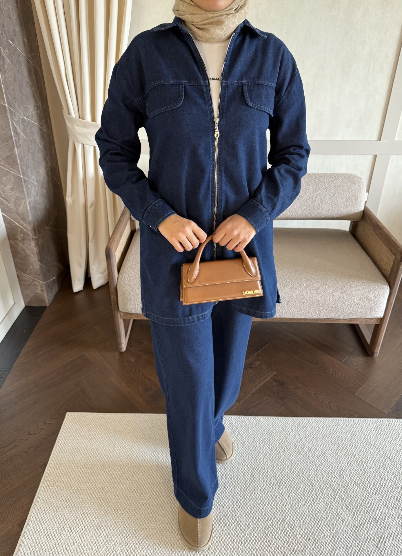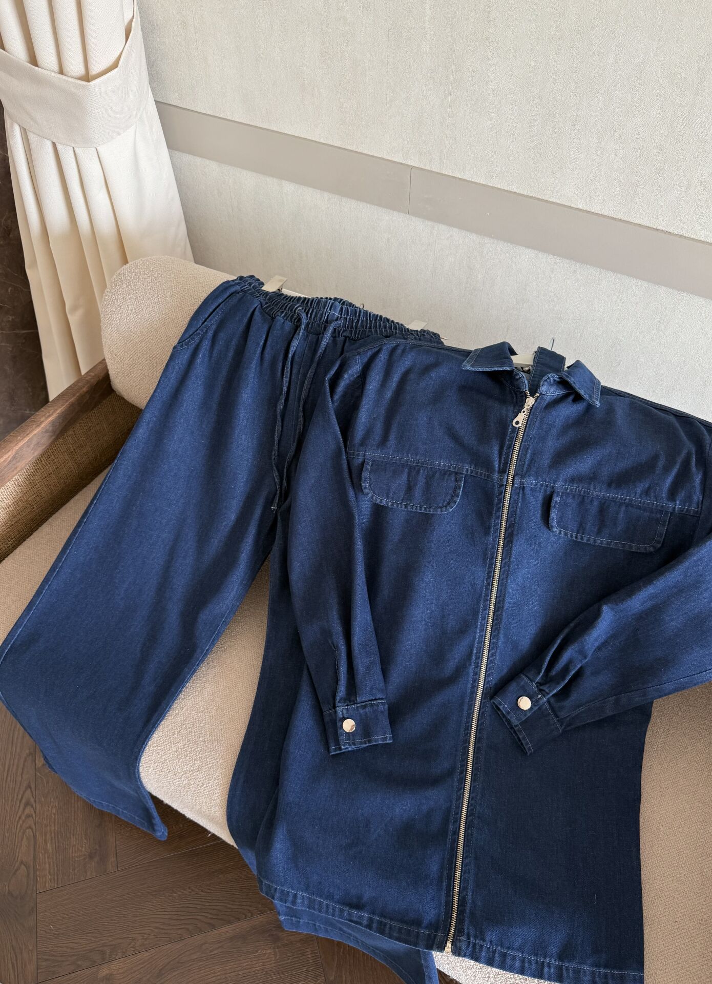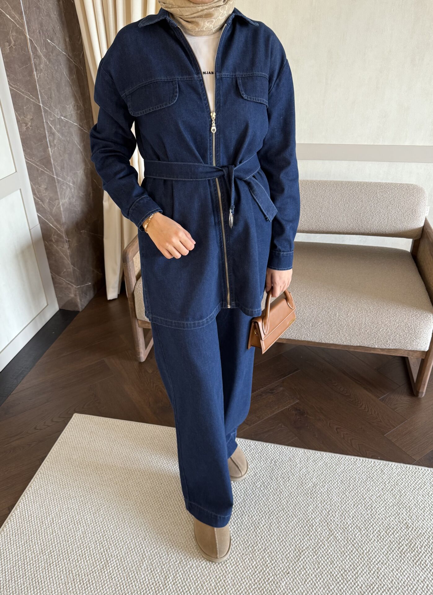 Fermuarlı Denim Takım (Koyu Mavi)