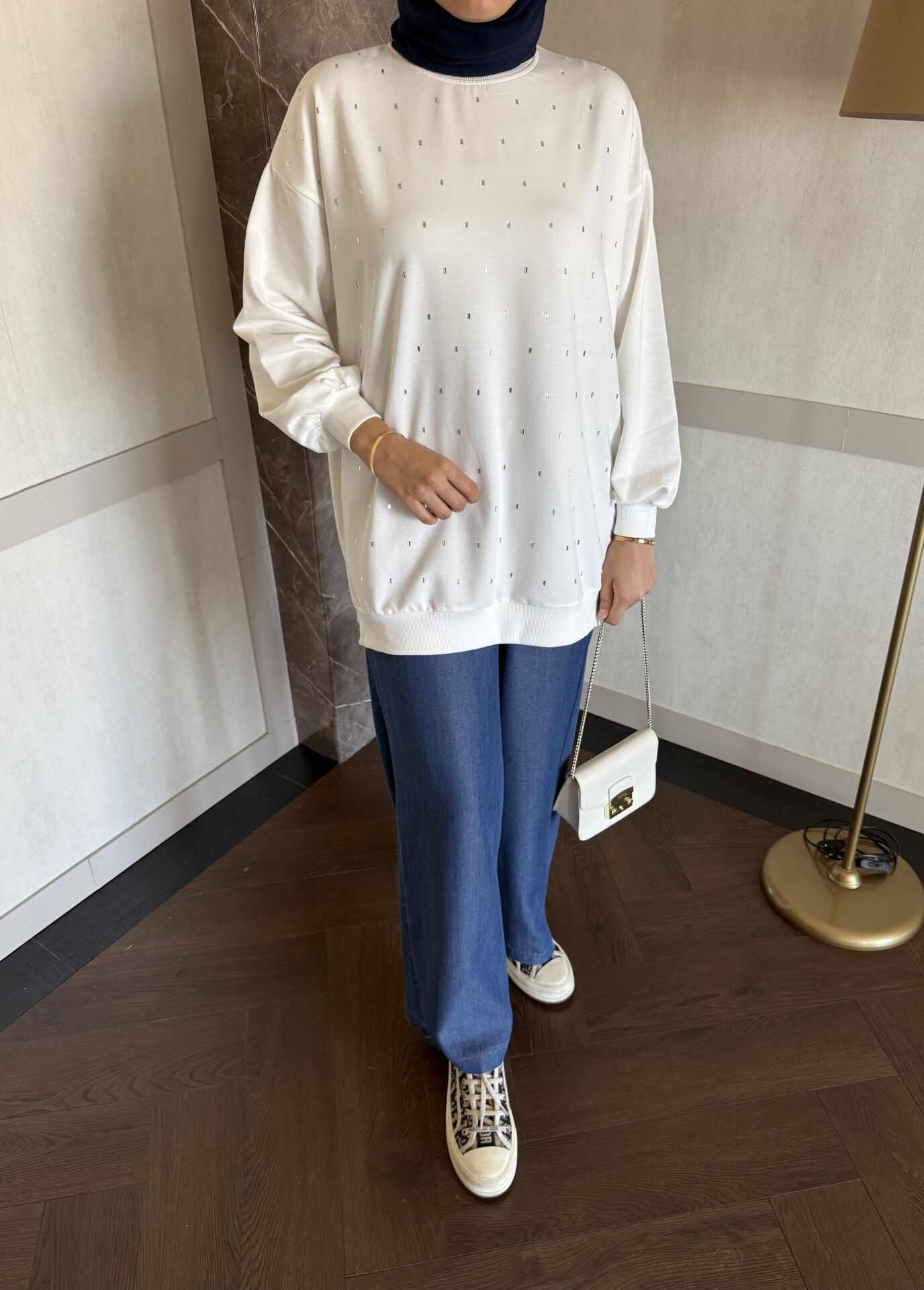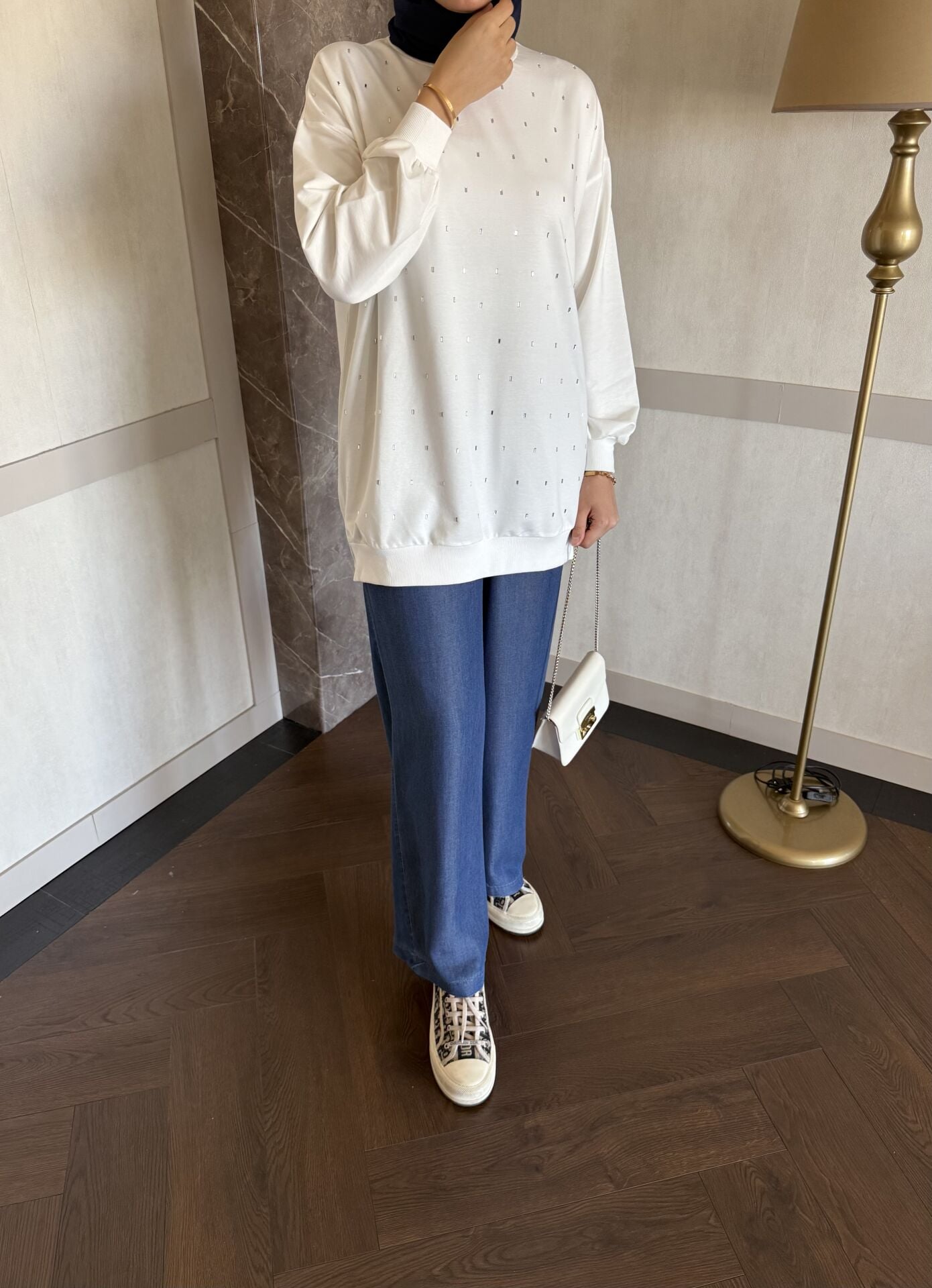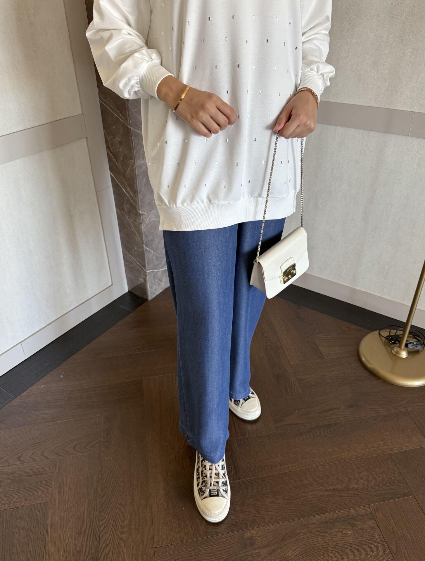 Manken boyu 170 cm, 38 beden ile çekimlerde 1 beden giyildi