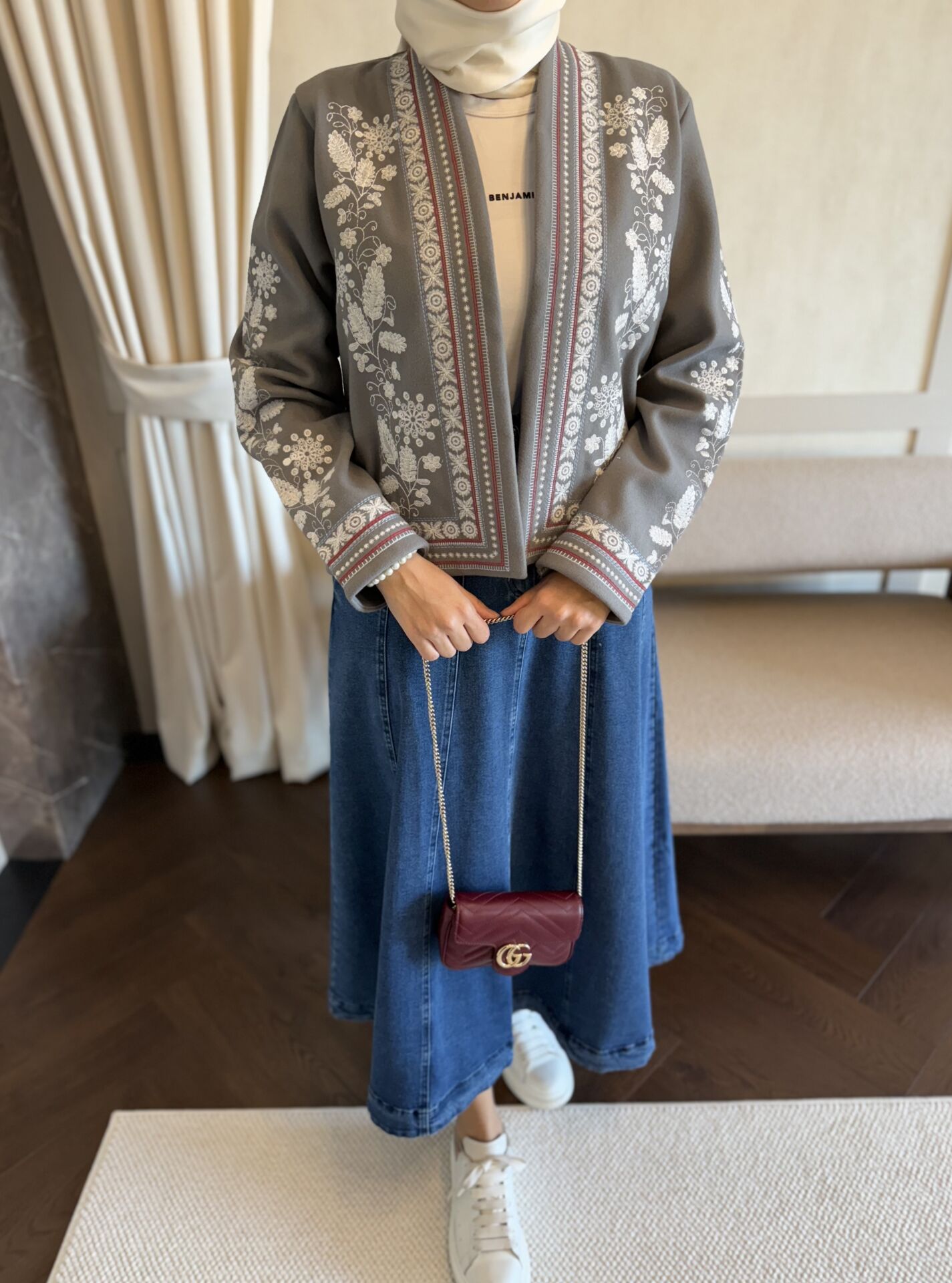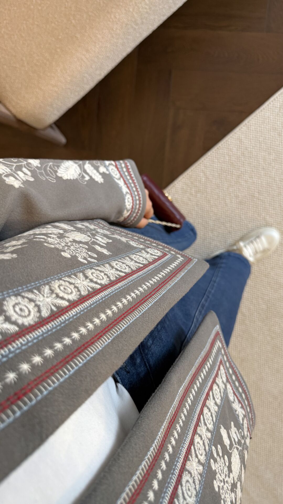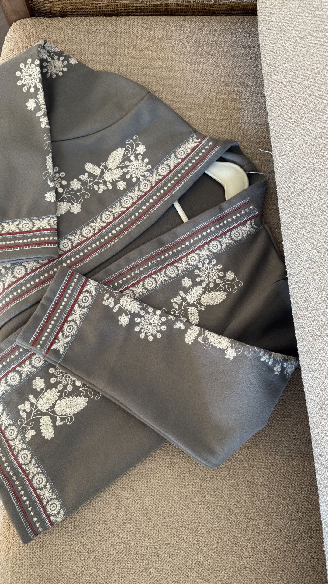 İşlemeli Kaşe Ceket (Gri Tonlar)