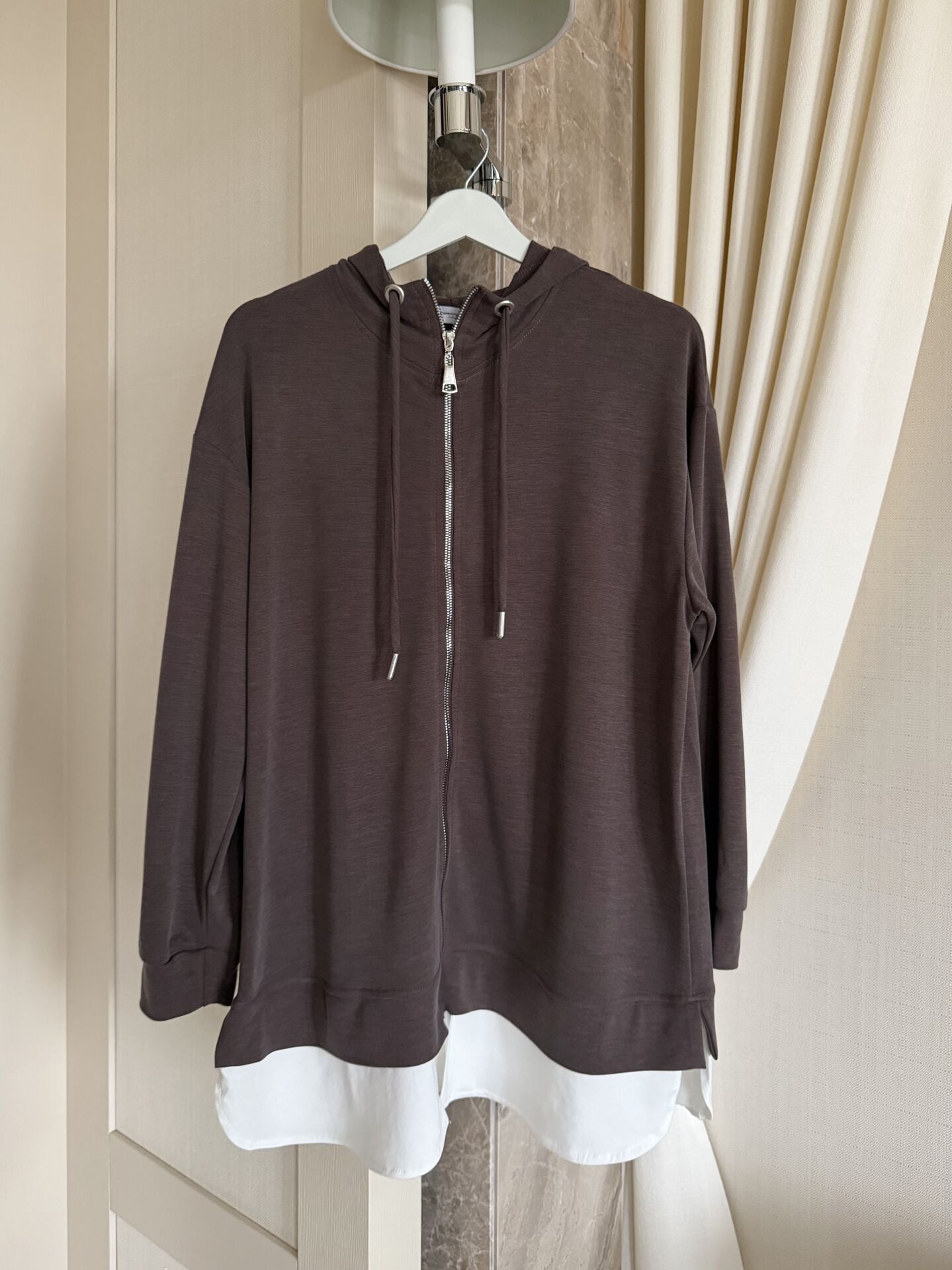 Üst uzunluk 77 cm, kapüşonlu, fermuarlıdır