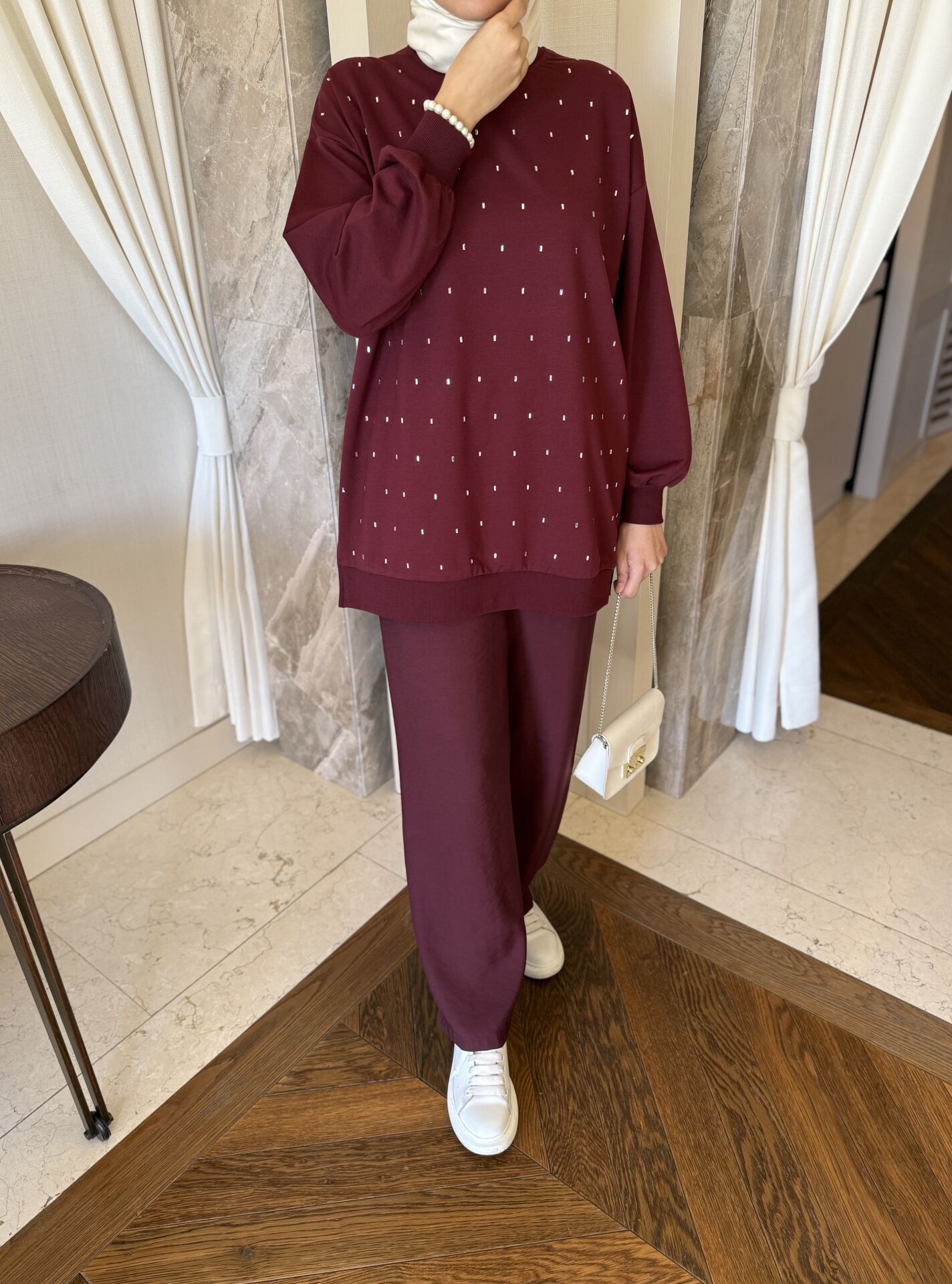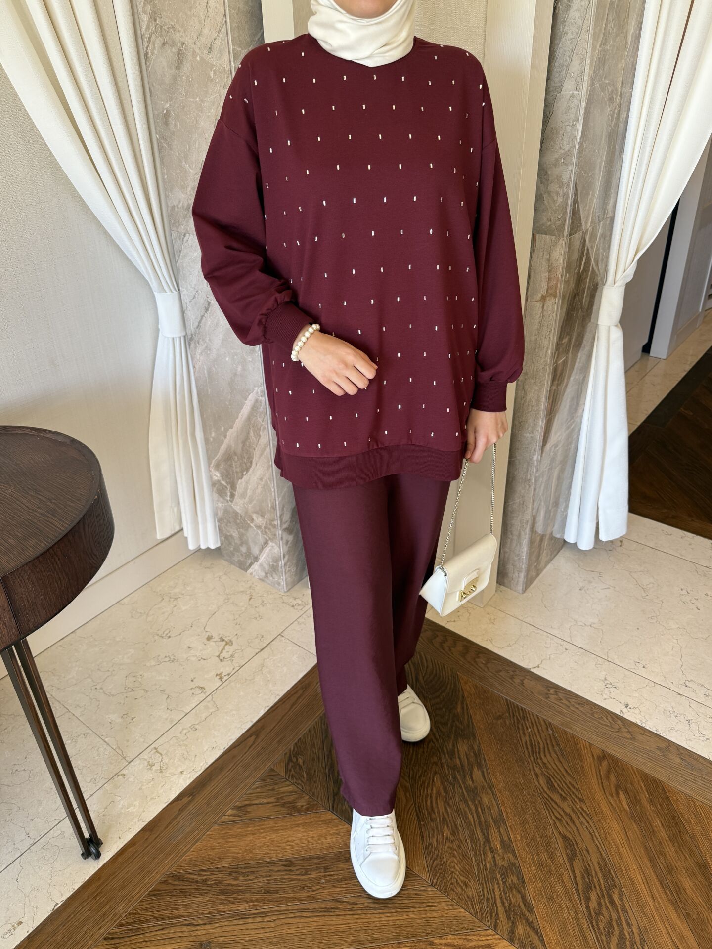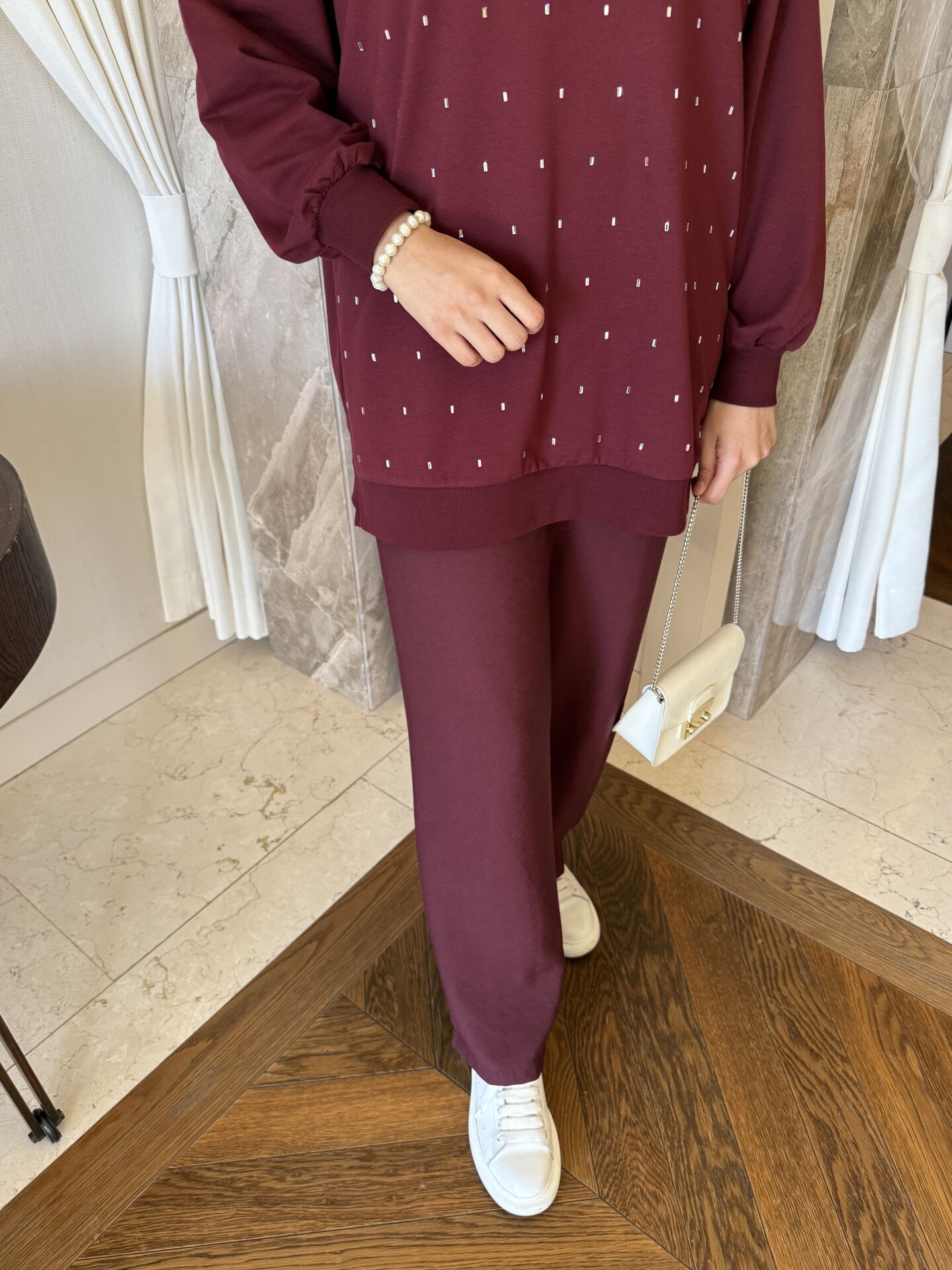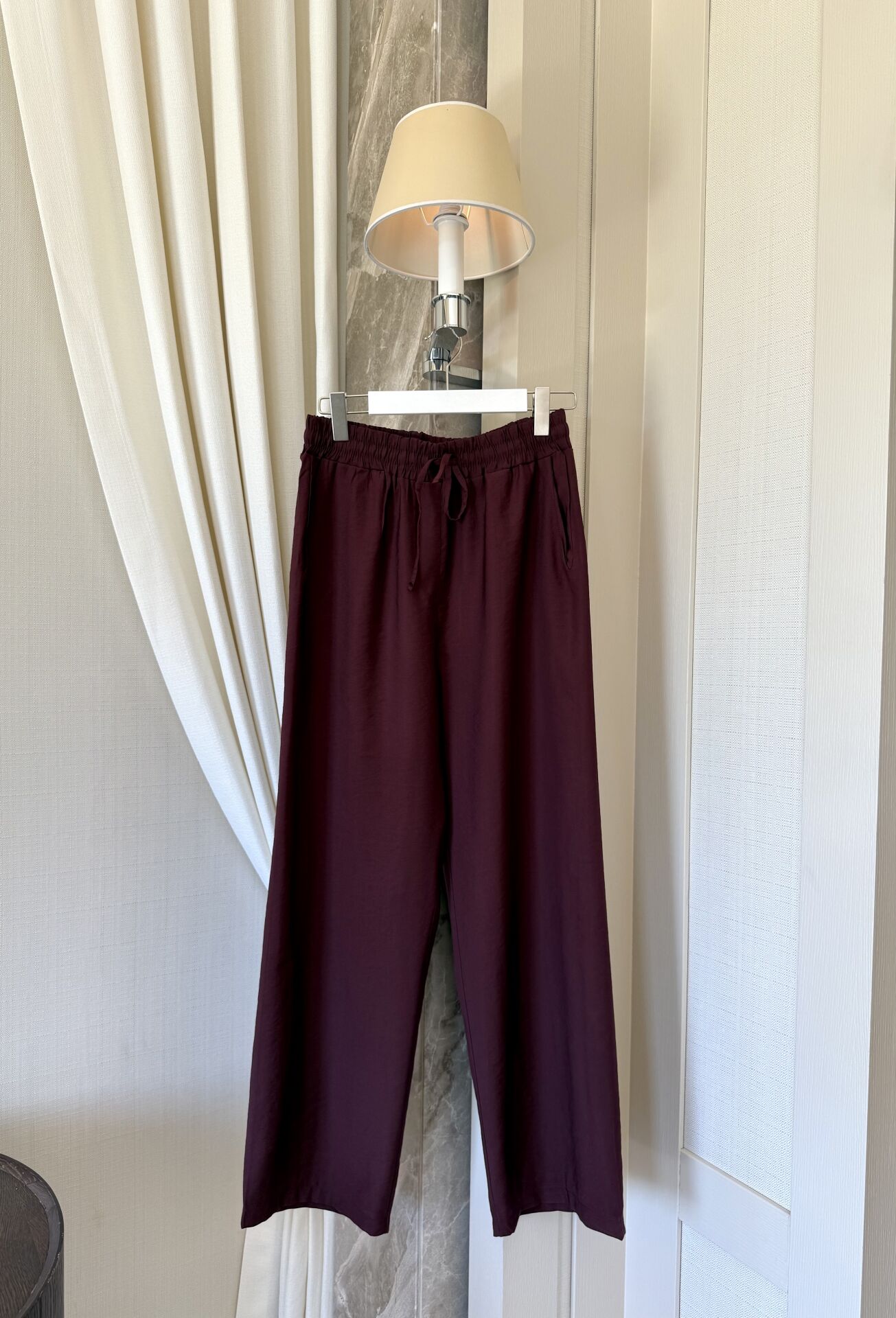 Keten Karışımlı Bol Paça Pantolon (Bordo)