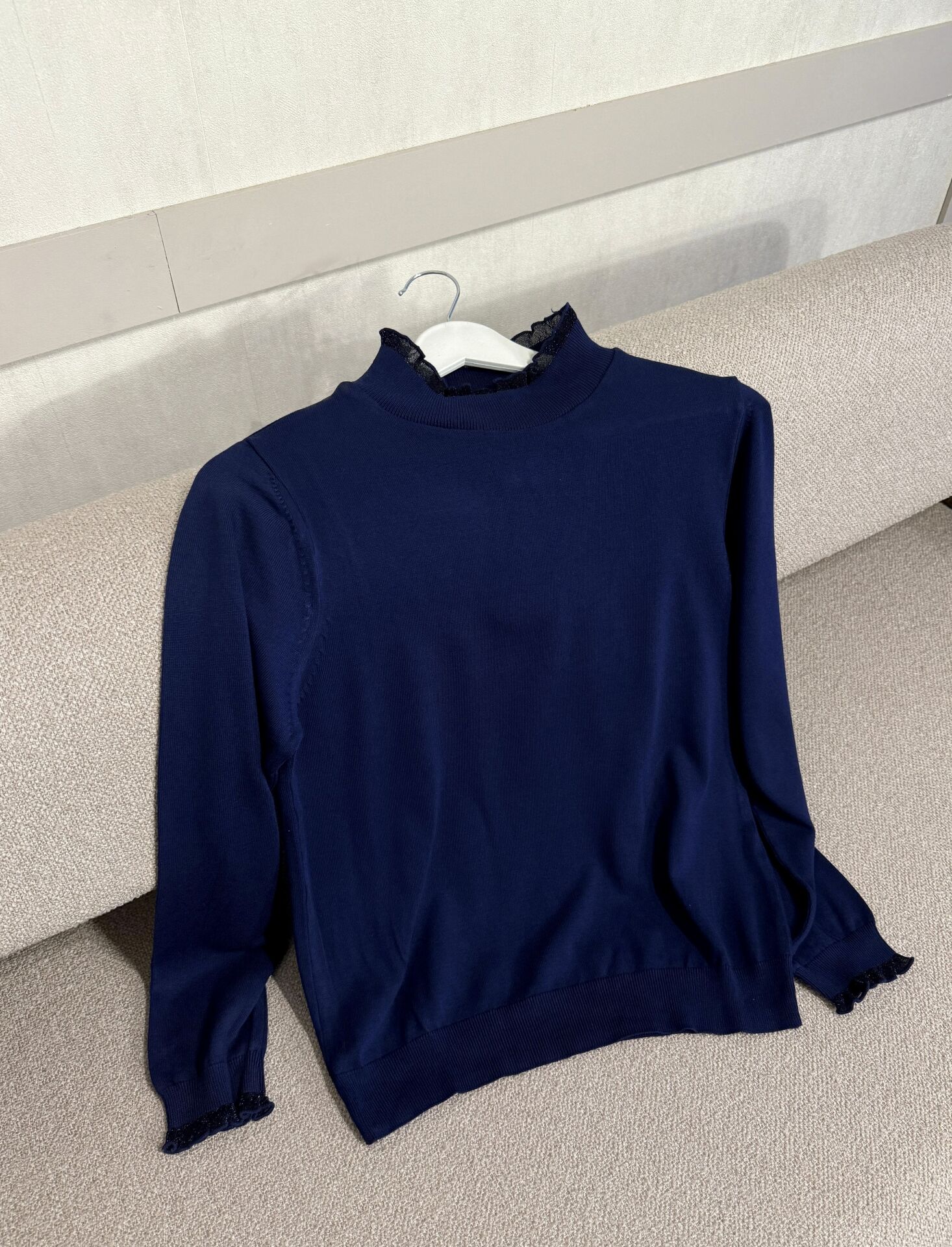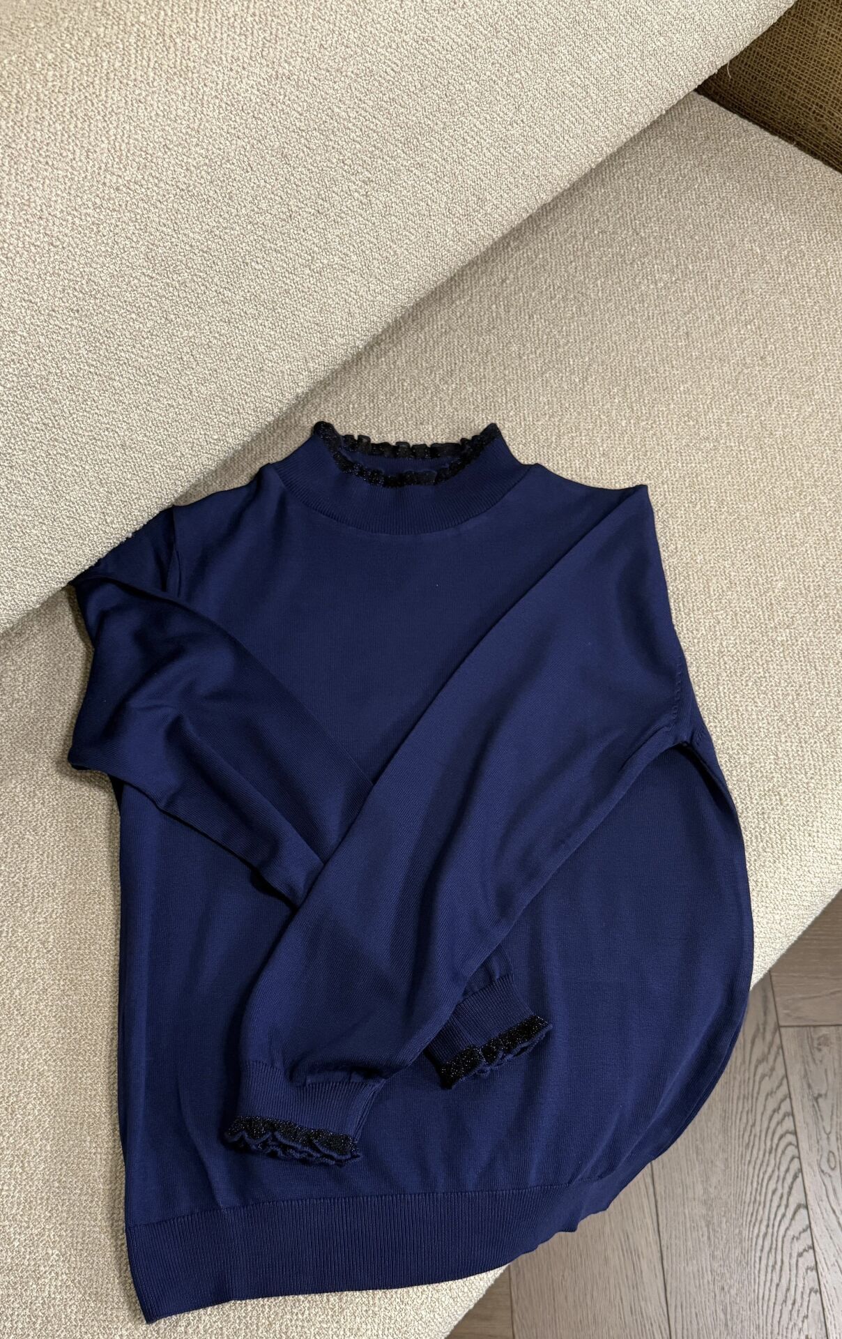 Kol ve Boyun Detaylı Kazak (Lacivert)