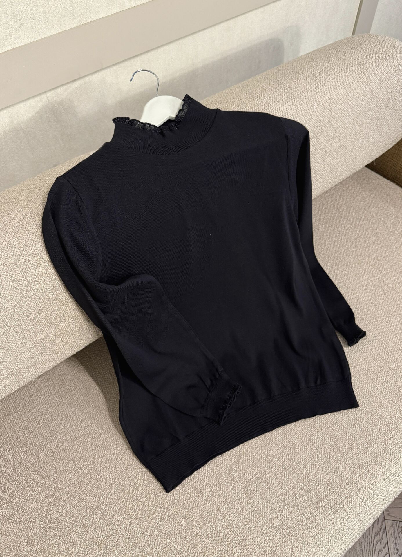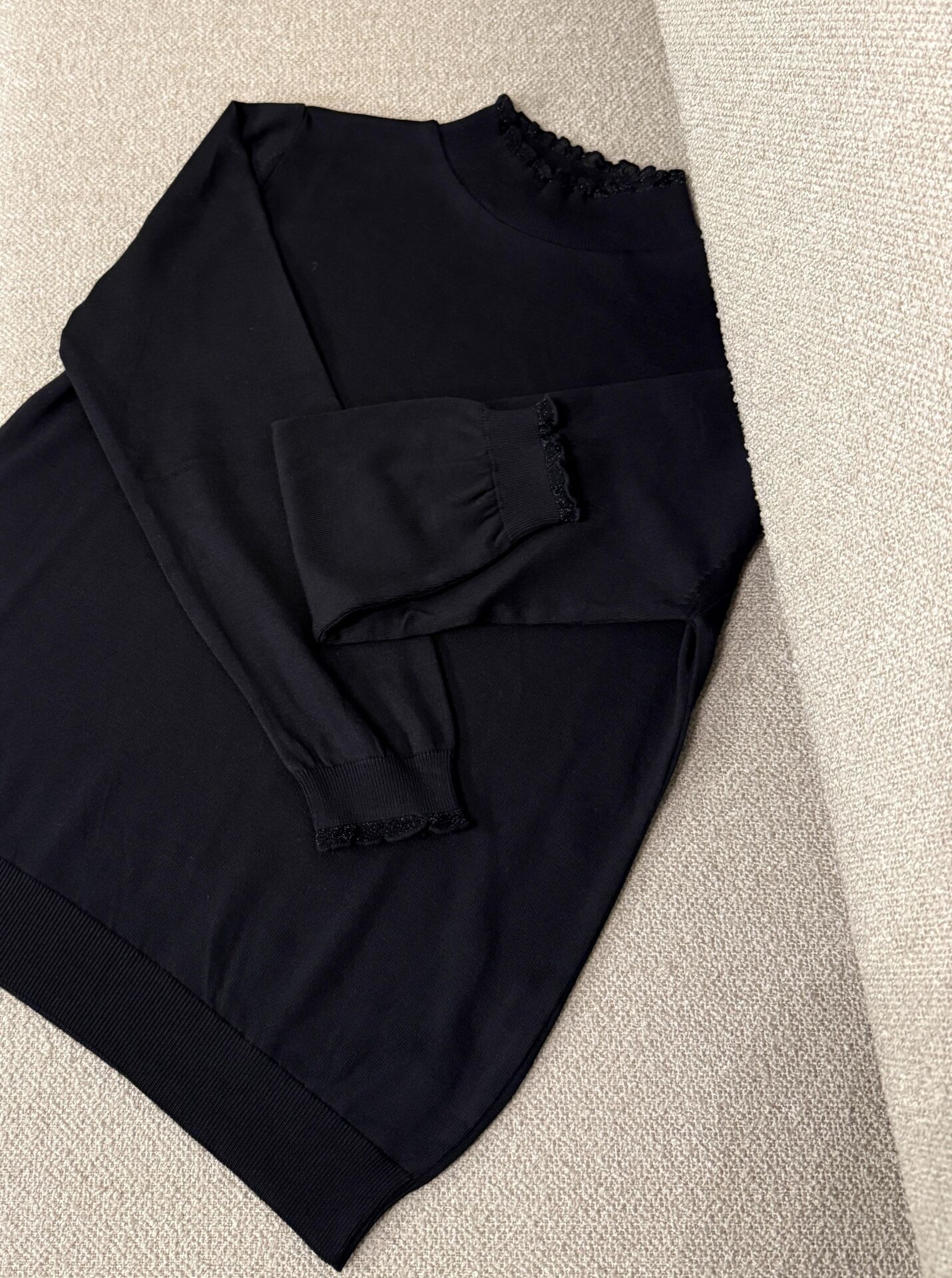 Kol ve Boyun Detaylı Kazak (Siyah)
