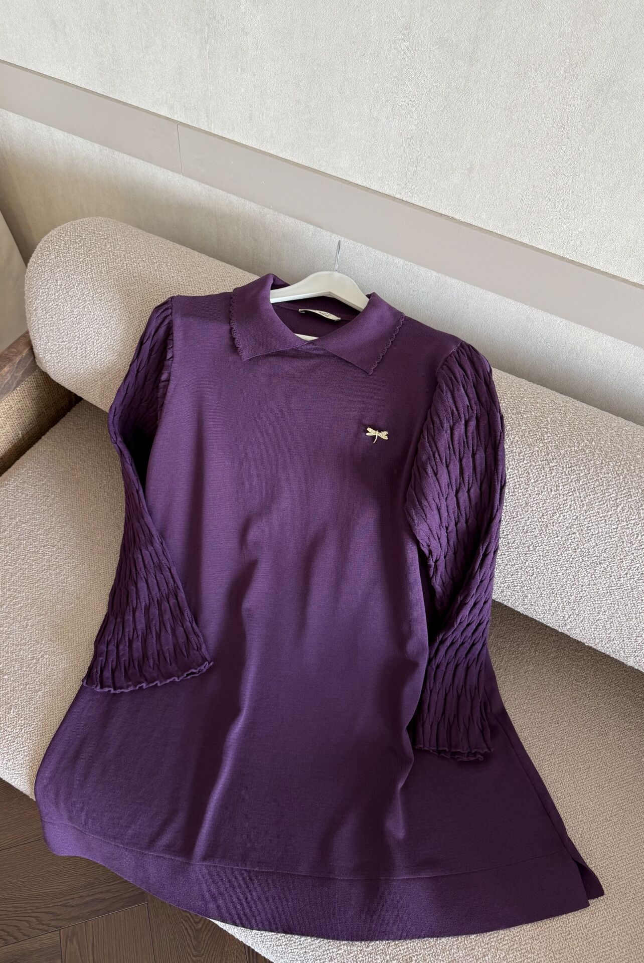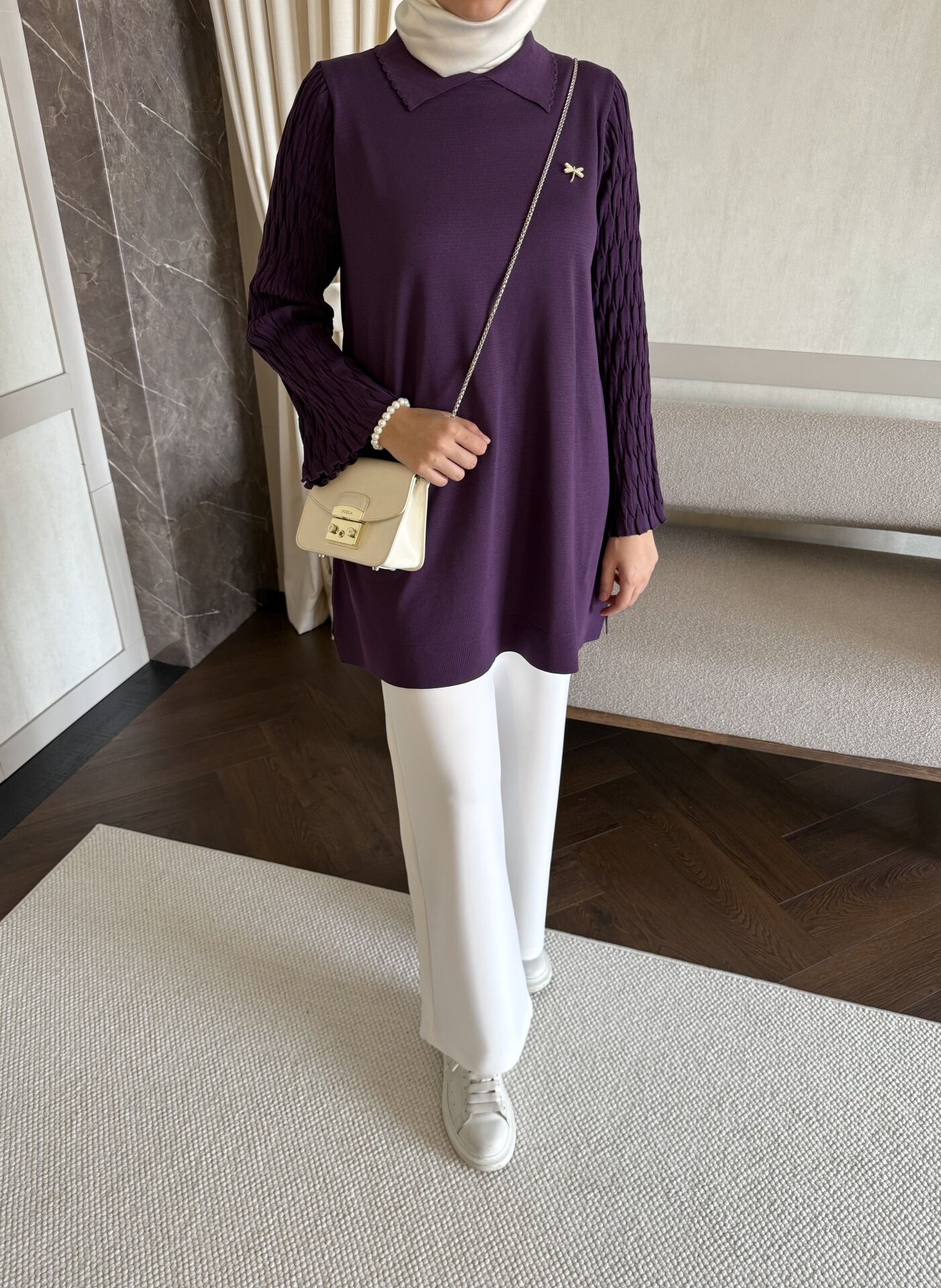 Kolları Desenli Yakalı Merserize Tunik (Mor)
