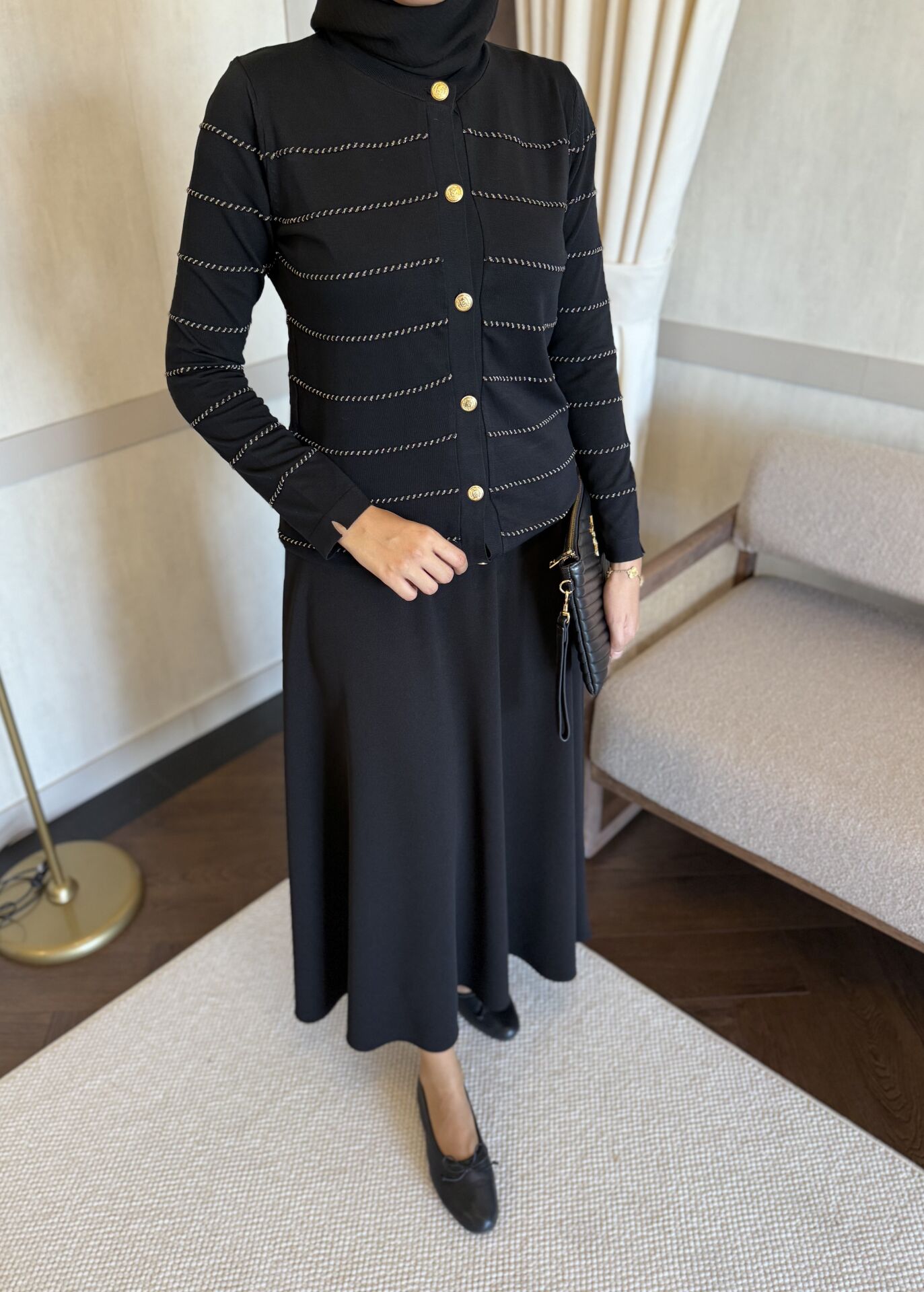 Line Merserize Hırka (Siyah)