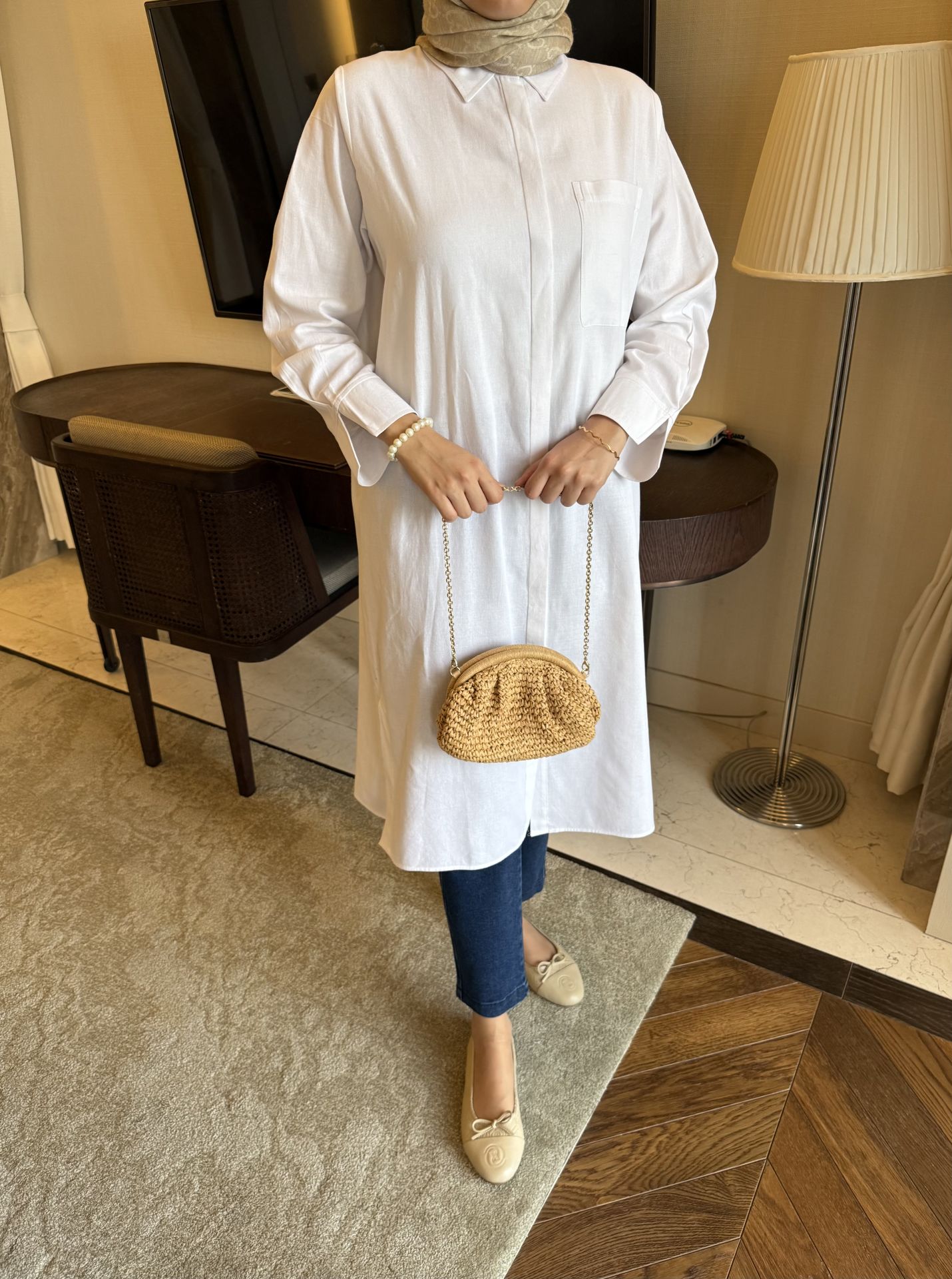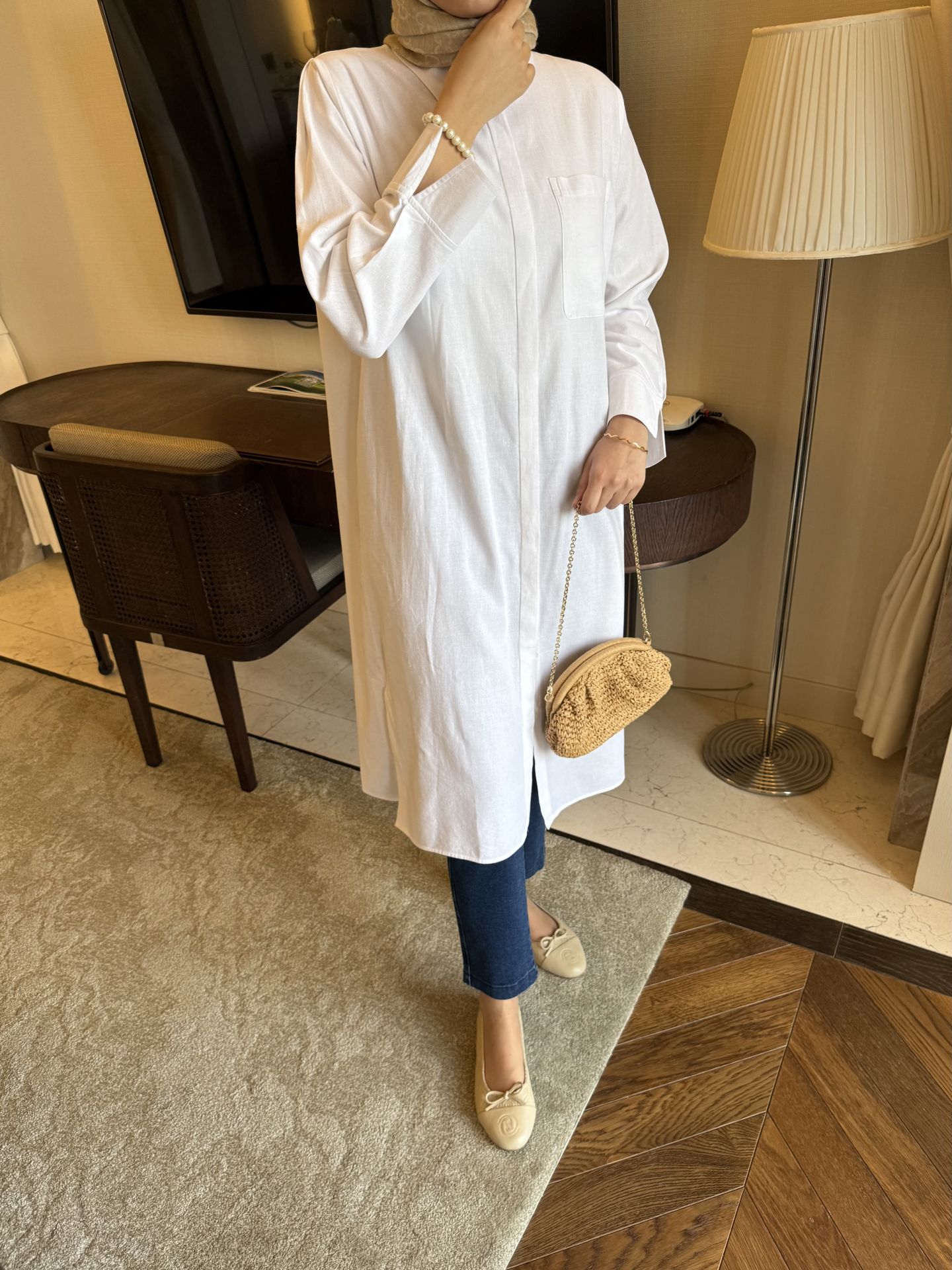 (Beyaz renk olduğu için, beden kısmında ten rengi veya beyaz kolsuz body giymenizi tavsiye ederiz)