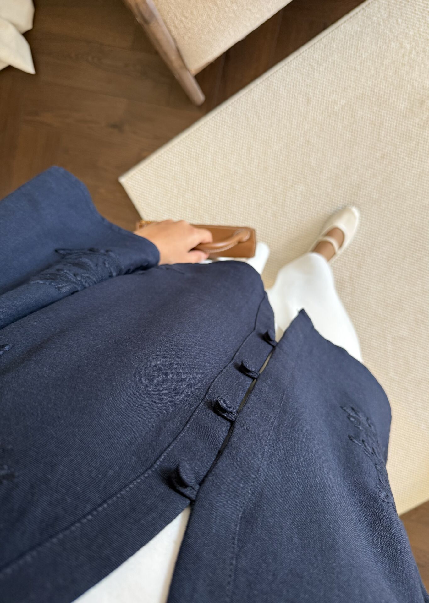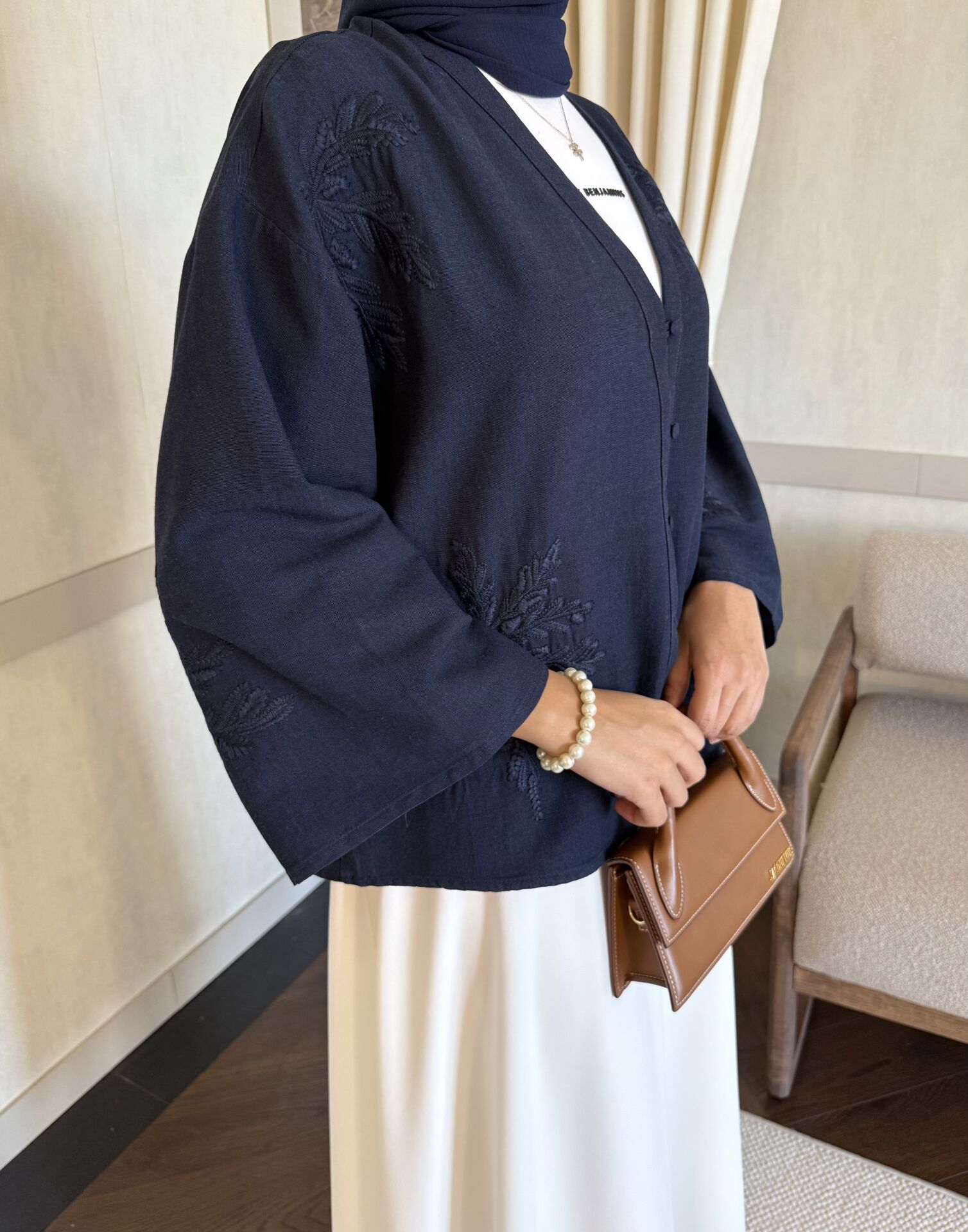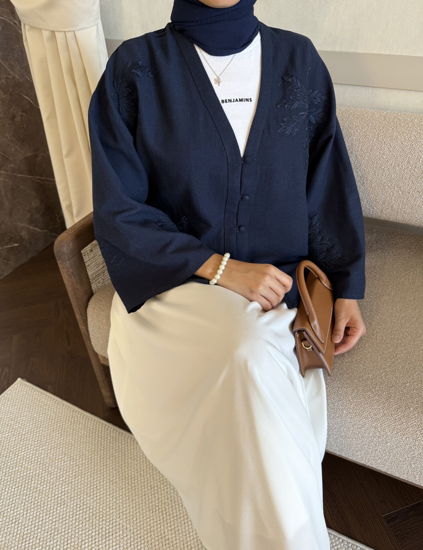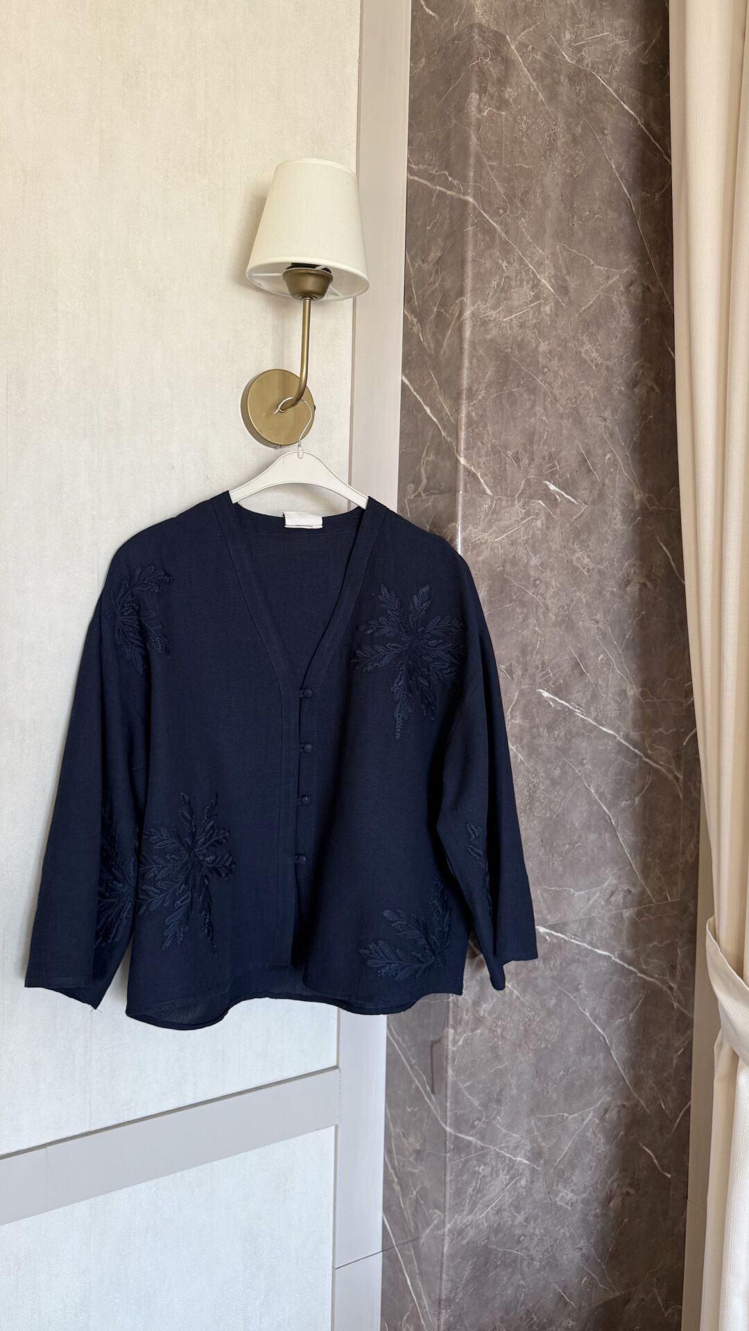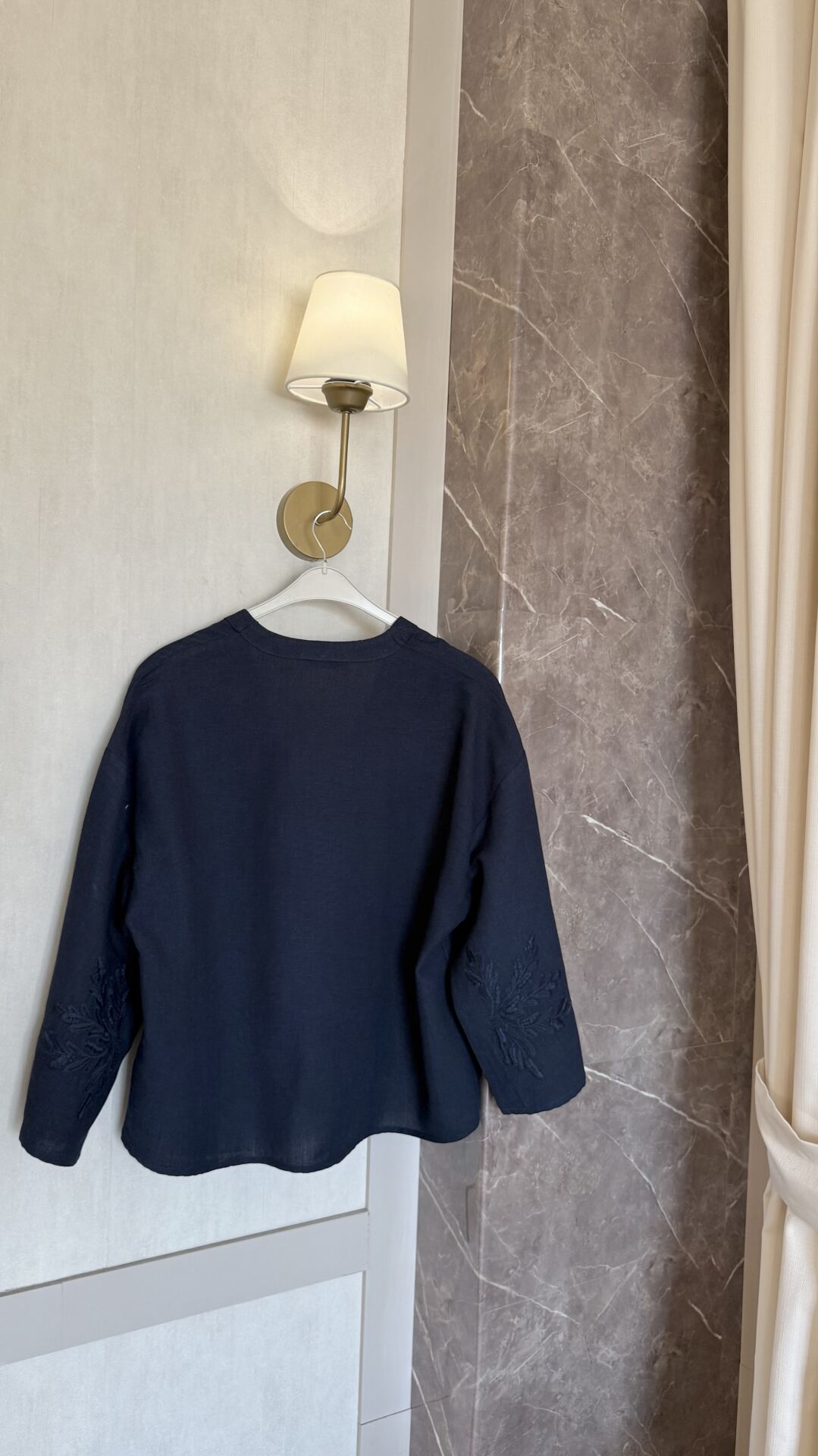 Nakış Detaylı V Yaka Gömlek (Lacivert)