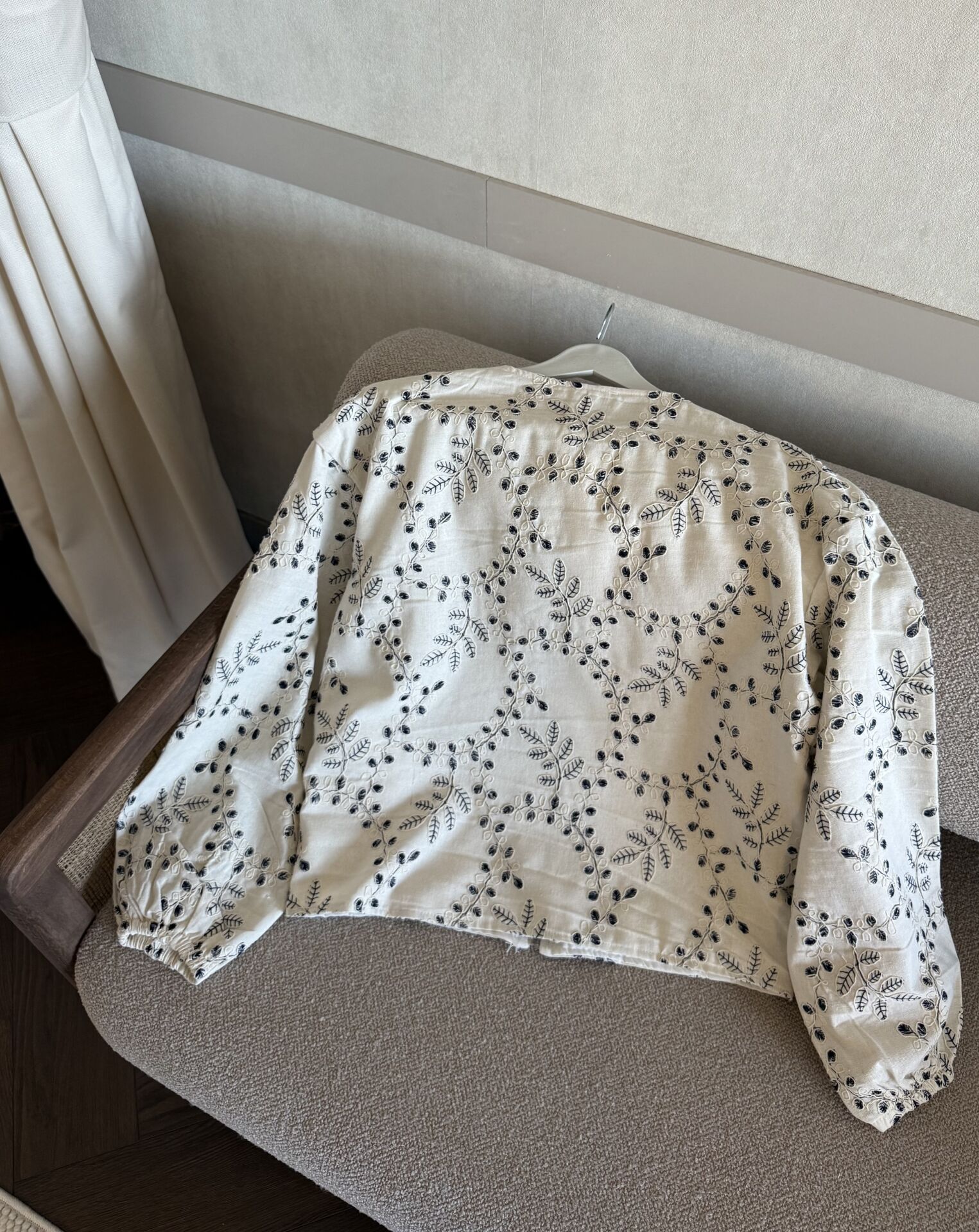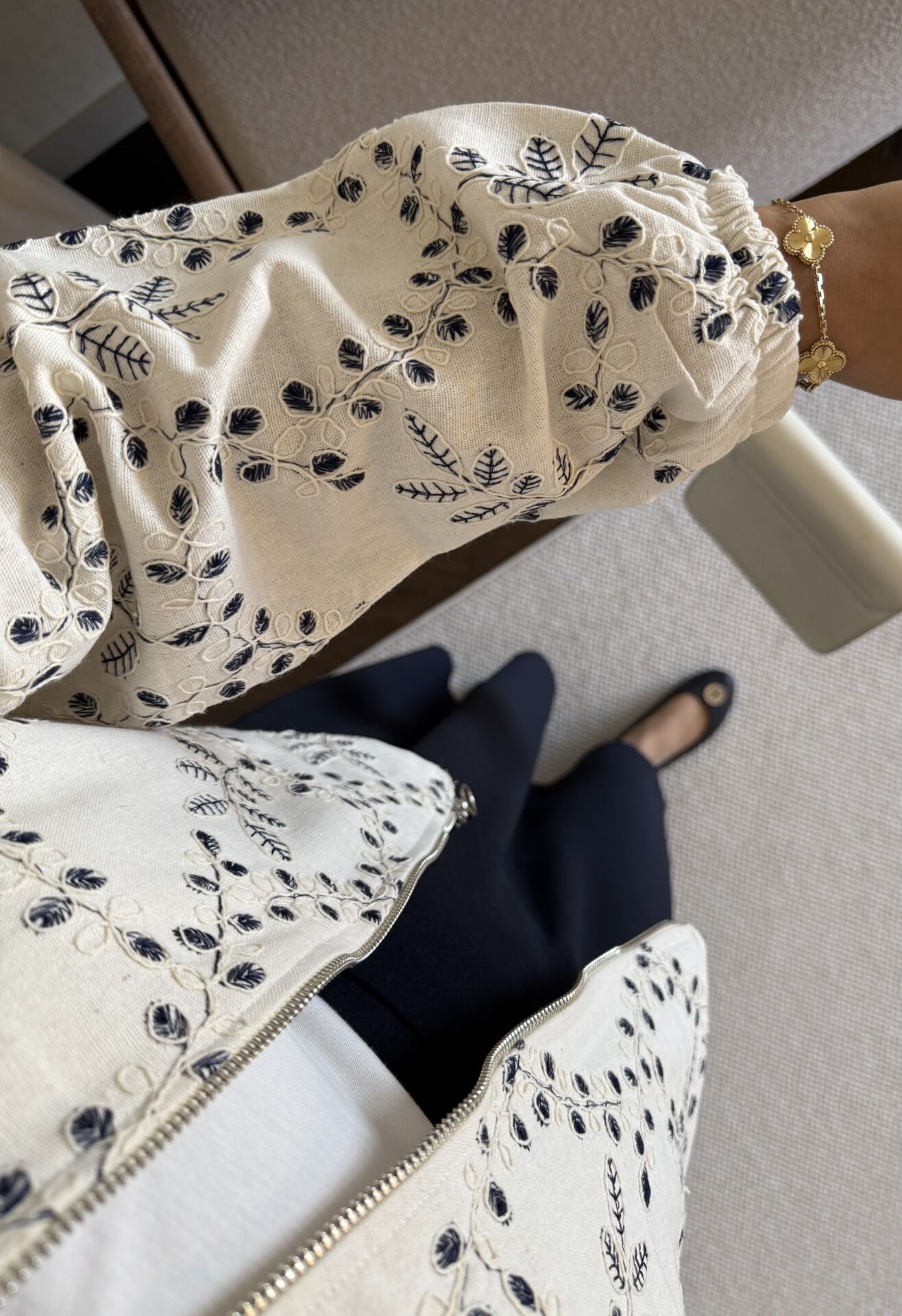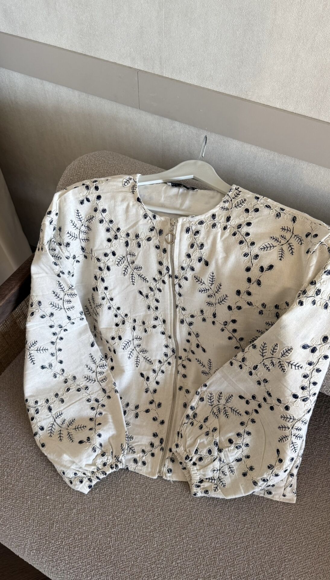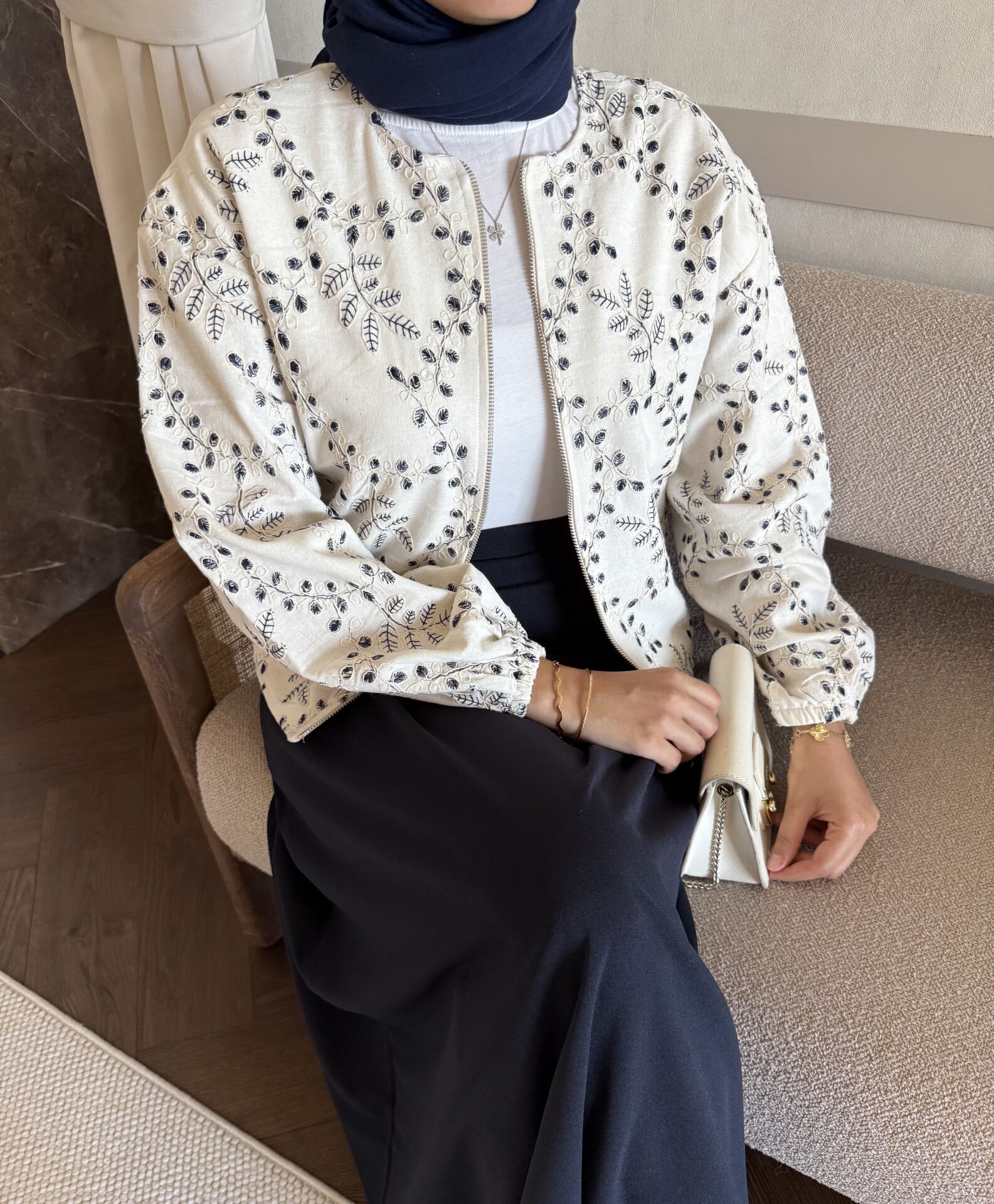 Nakışlı Naturel Ceket (Lacivert Geçişli)