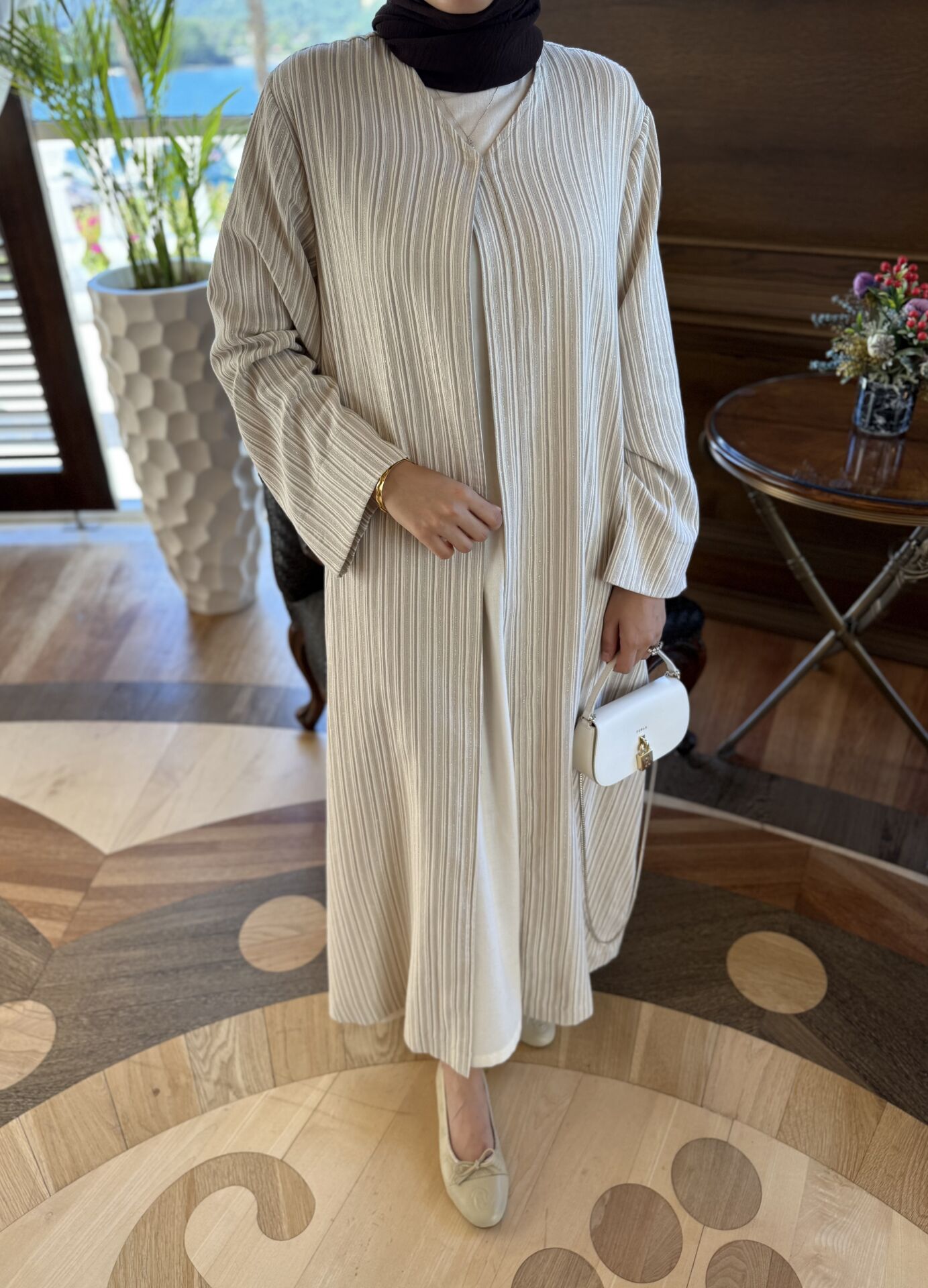 Manken boyu 170 cm, 38 beden ile çekimlerde 1 beden giyildi.