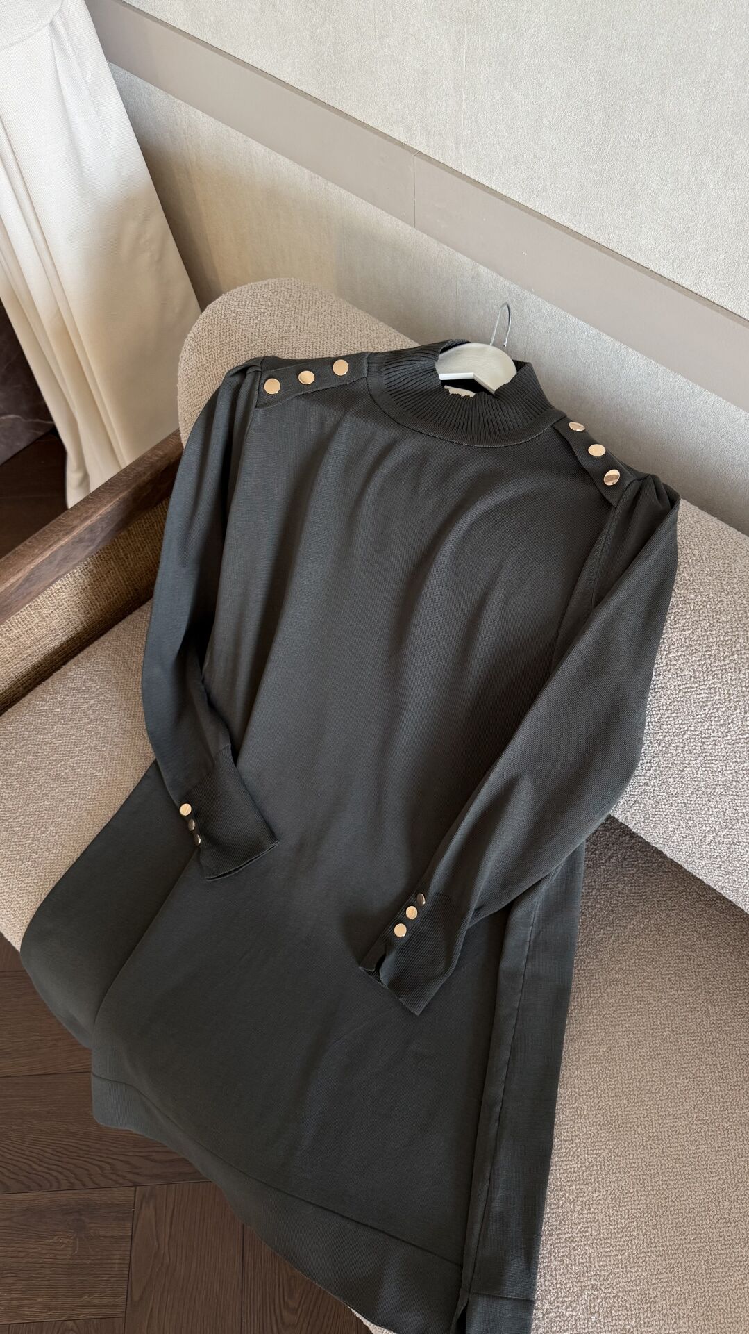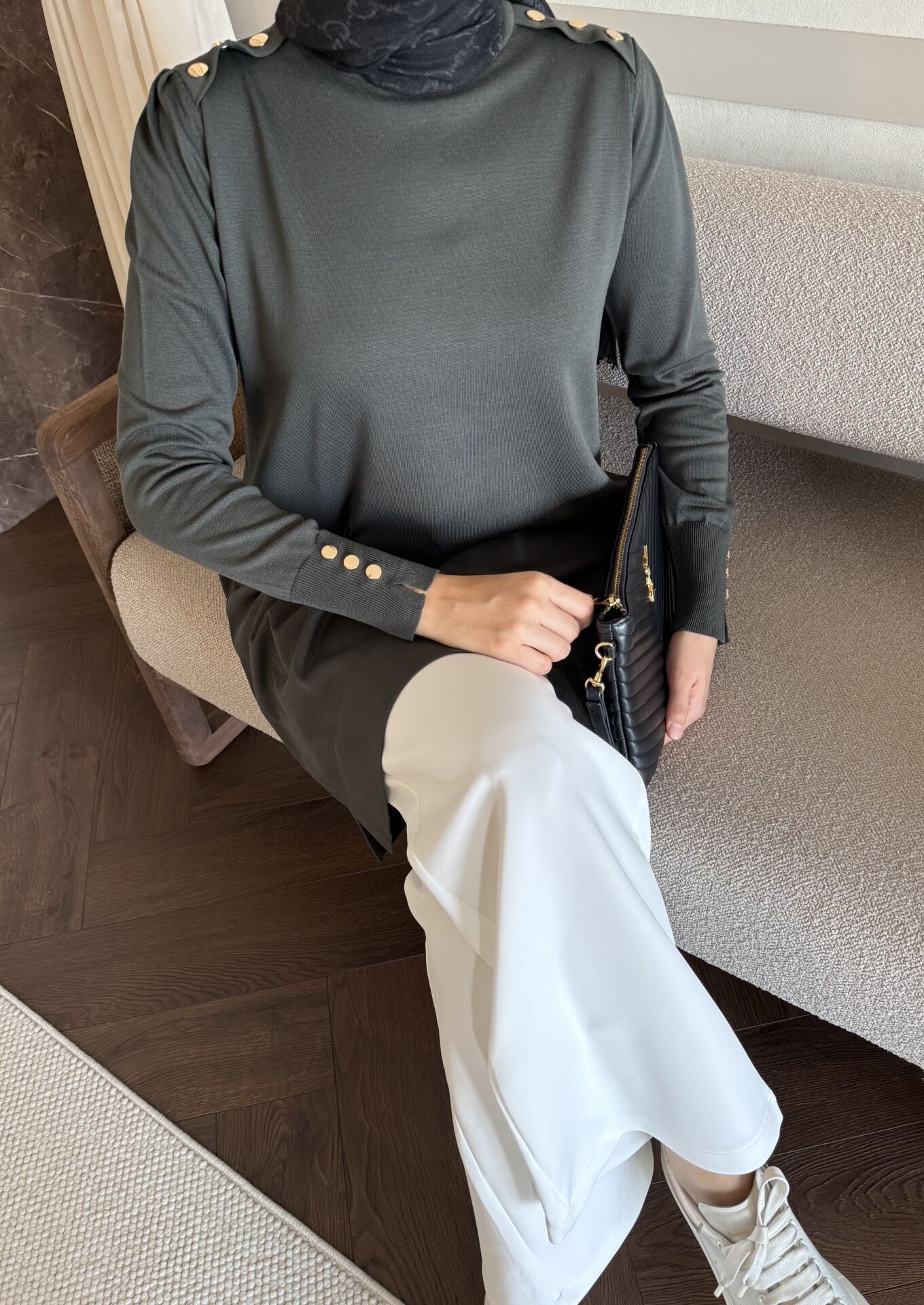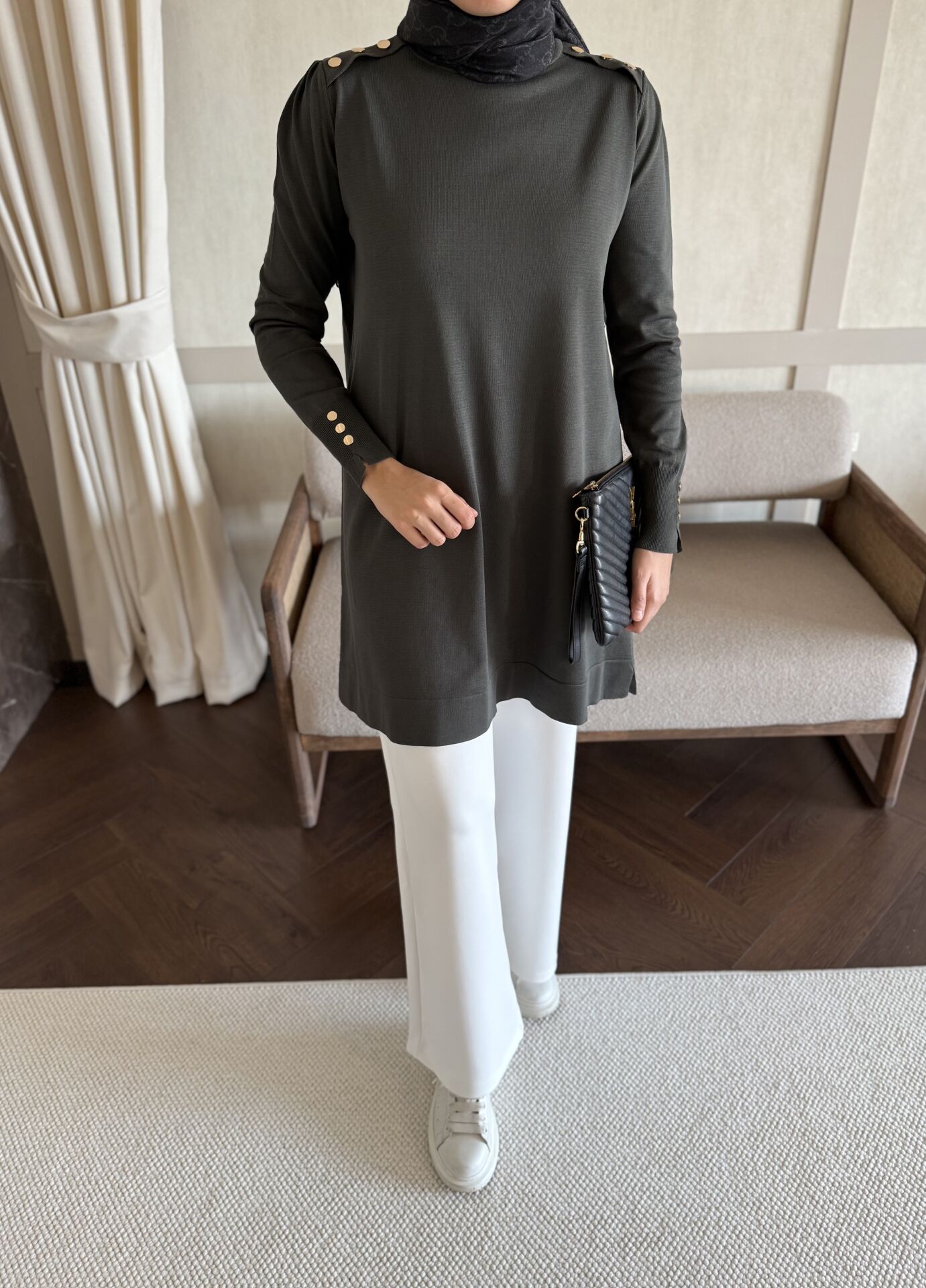 Omzu Patlı Merserize Tunik (Haki)