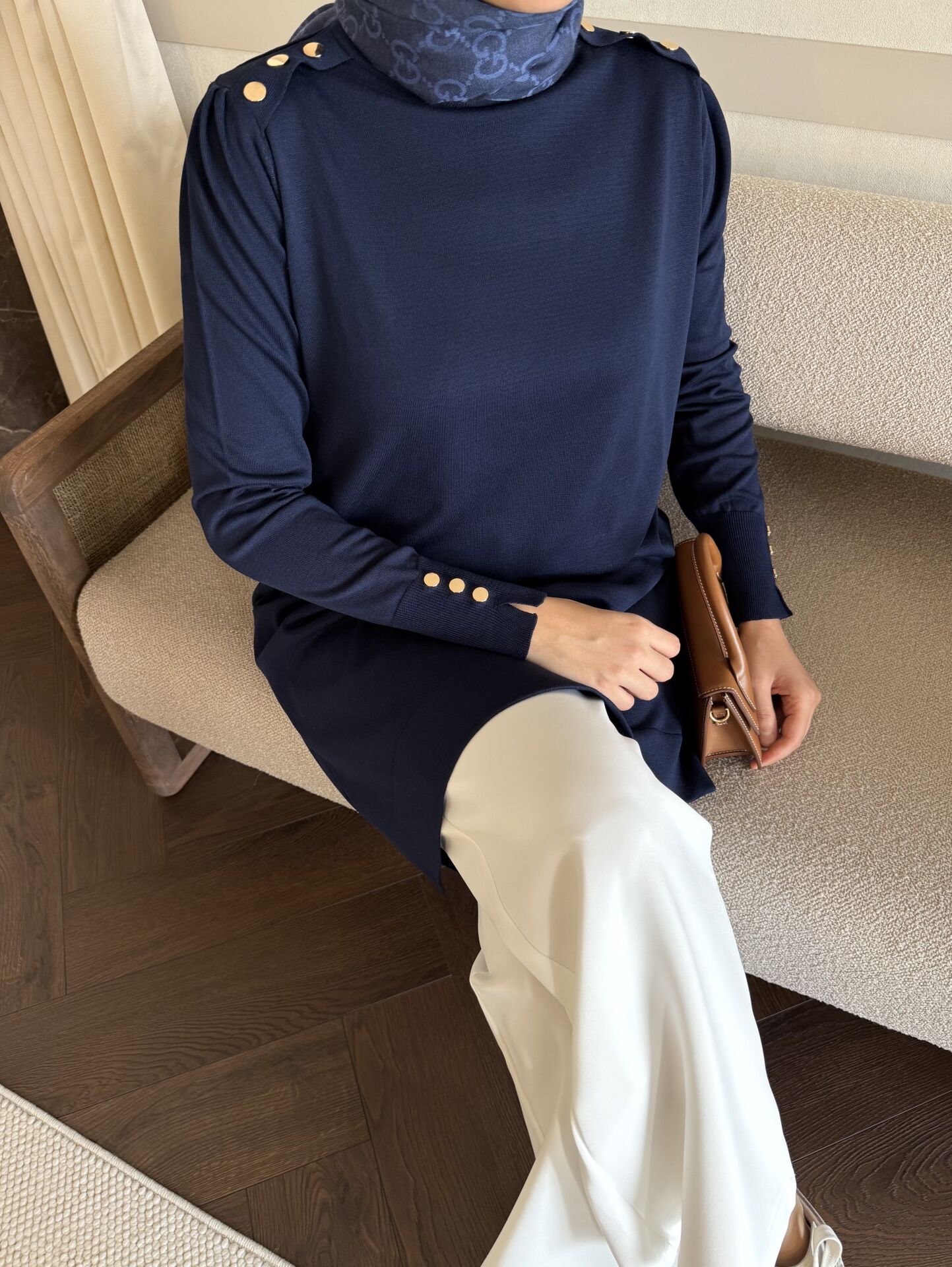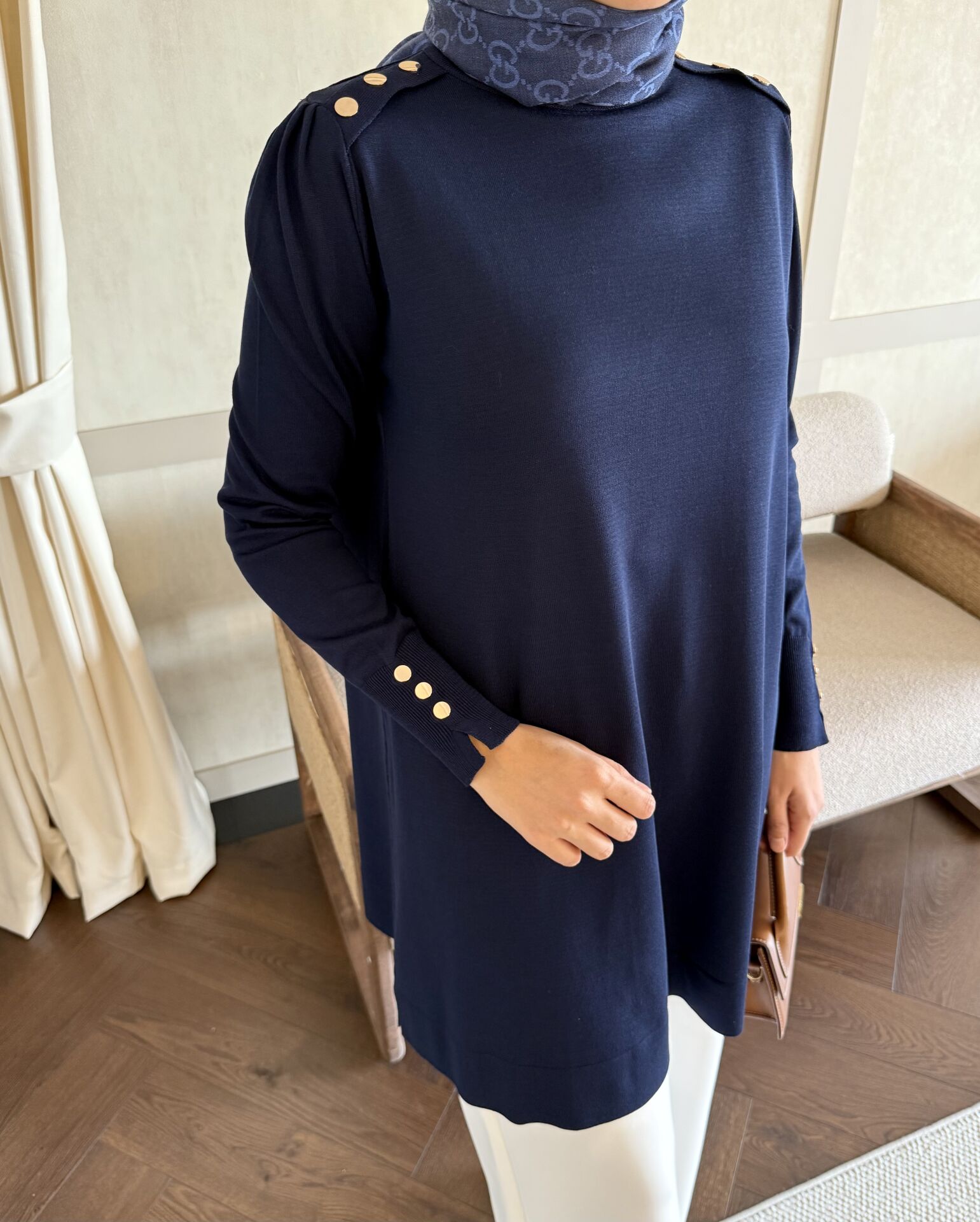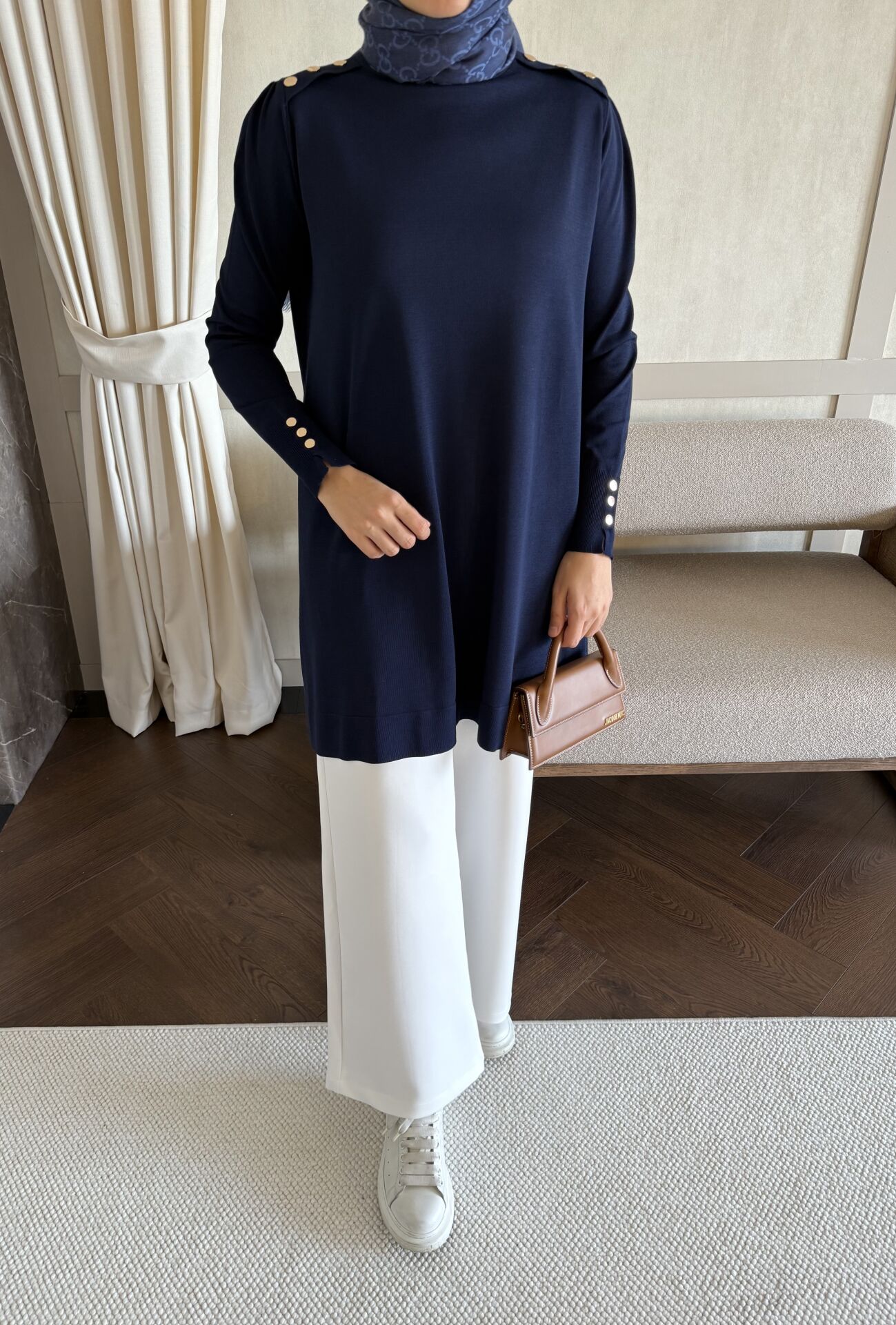 Omzu Patlı Merserize Tunik (Lacivert)