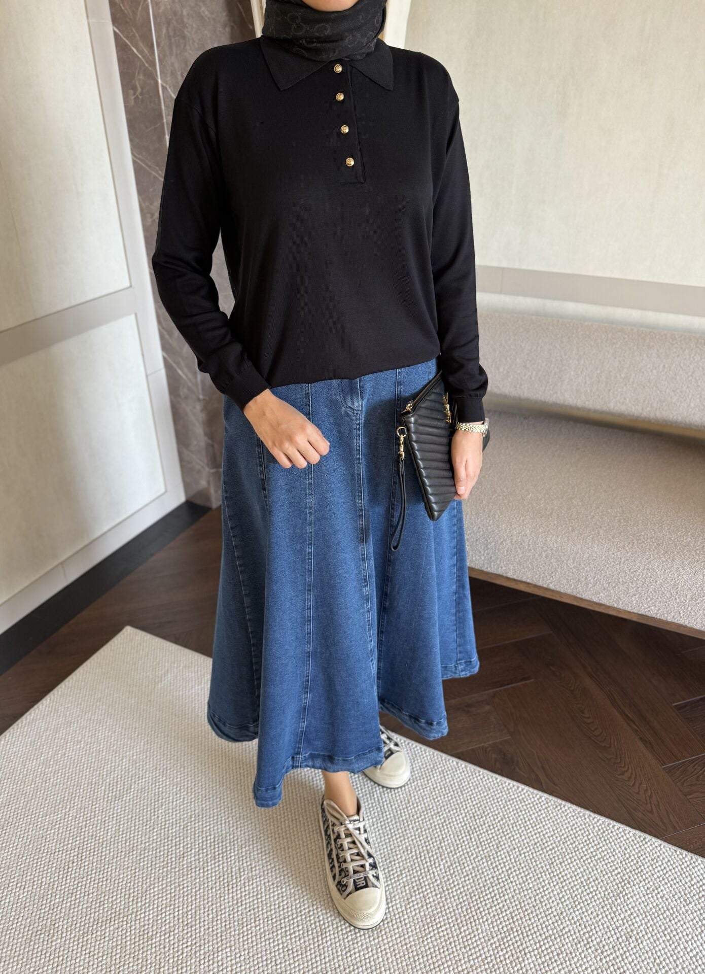 Polo Yaka Merserize Kazak (Siyah)