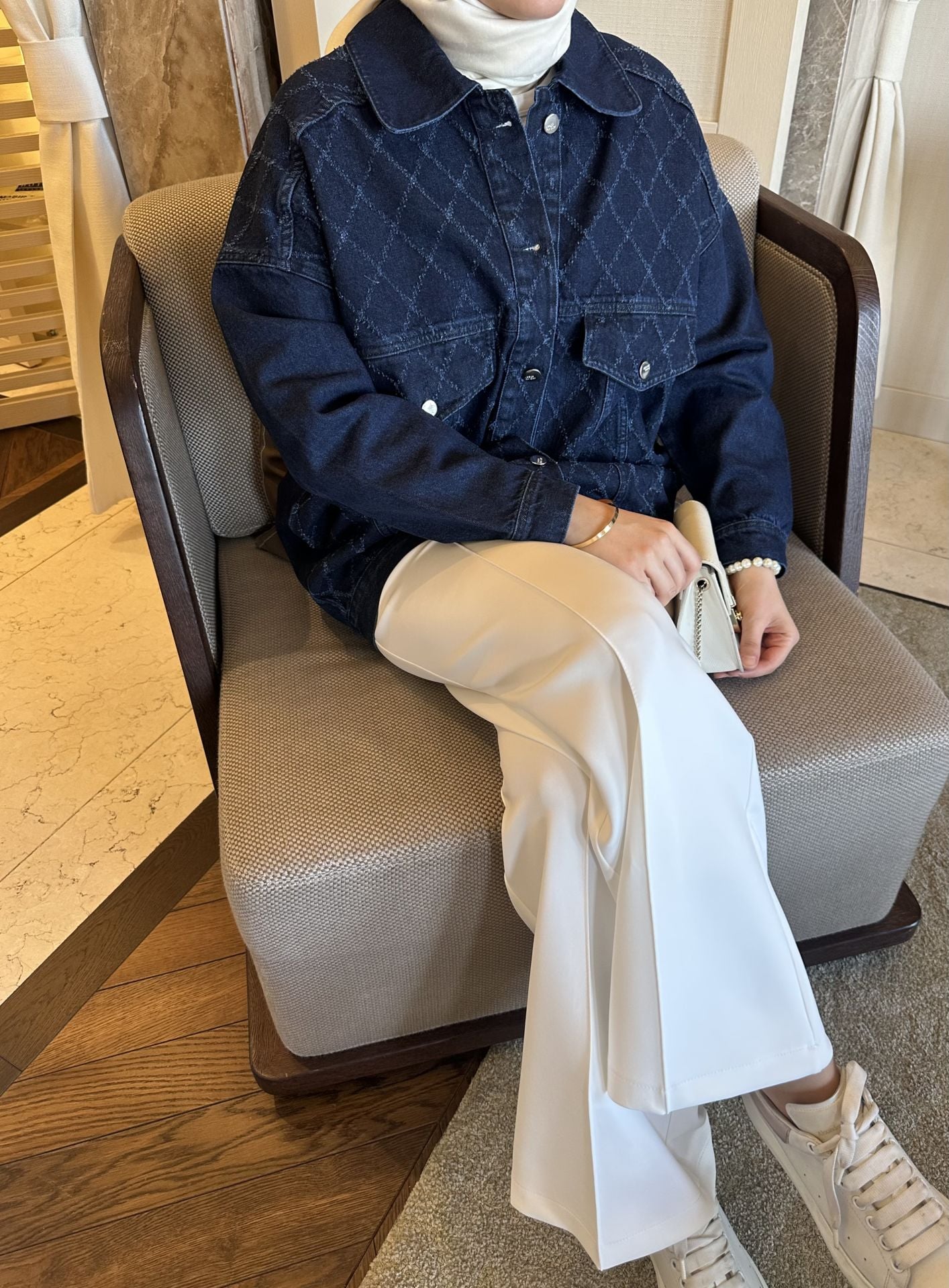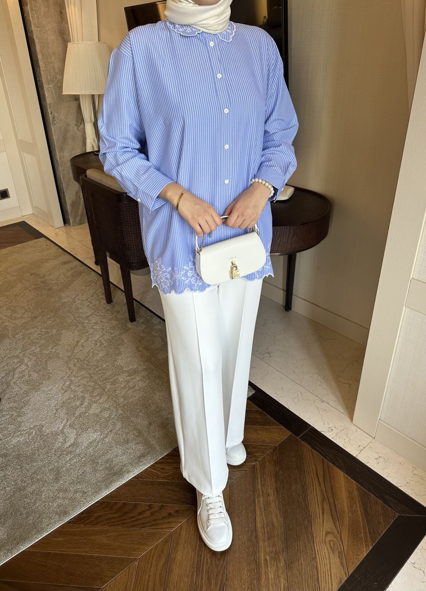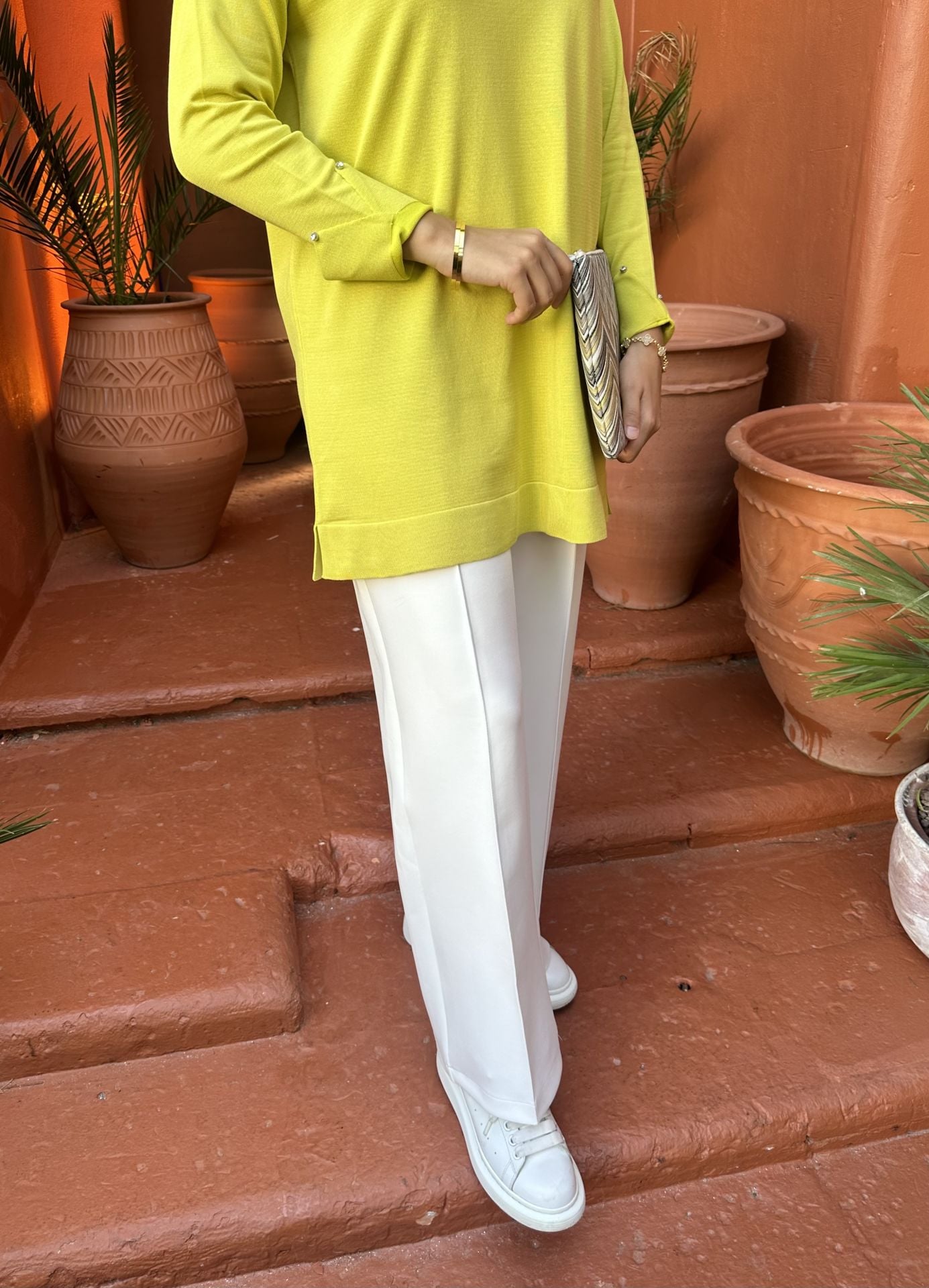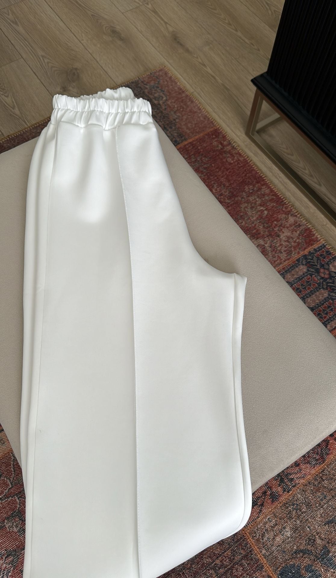 Dikiş İzli Scuba Bol Paça Pantolon (Beyaz)