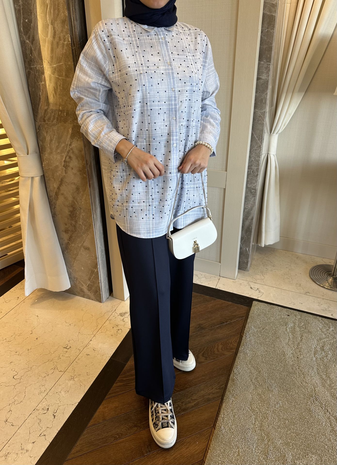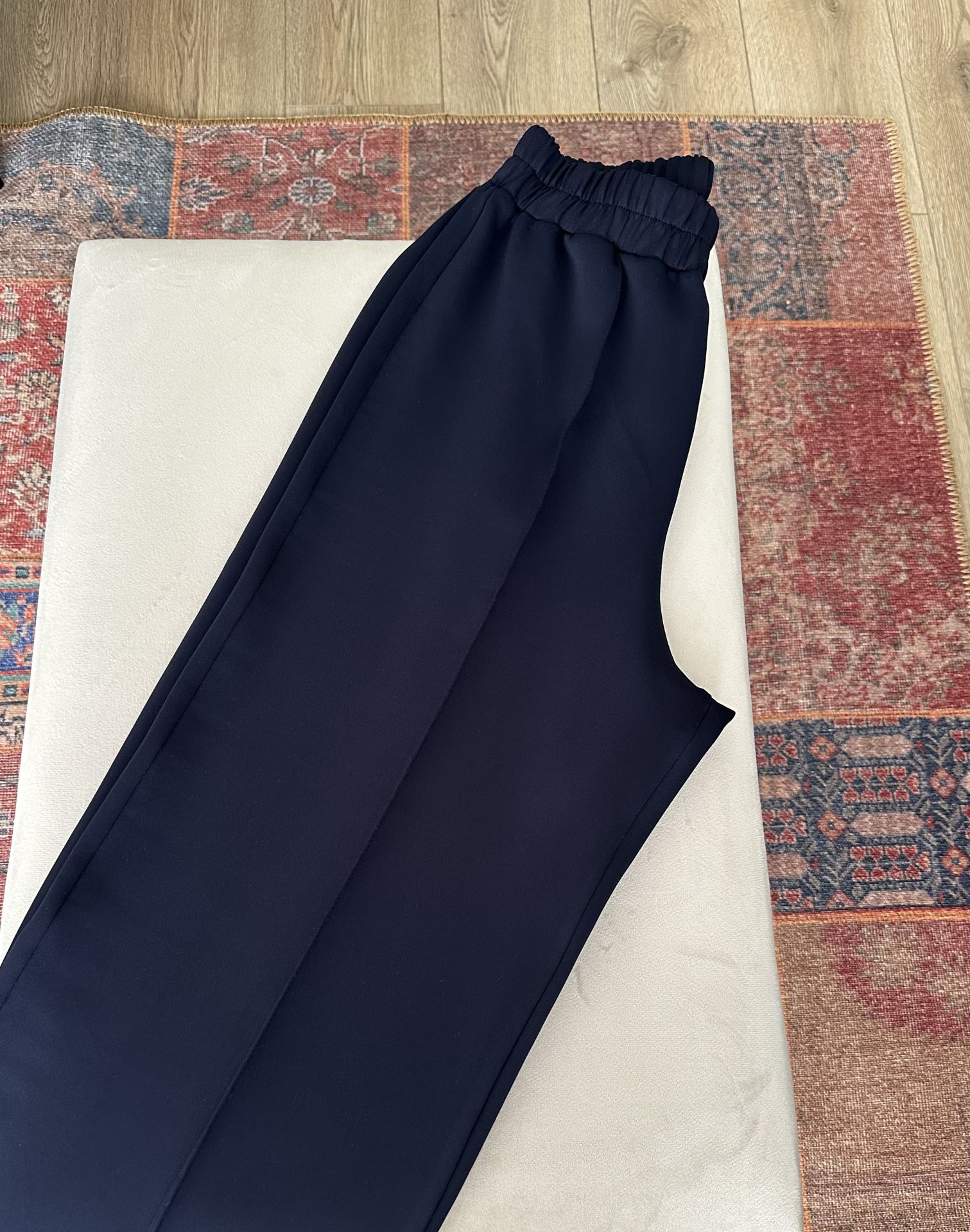 Dikiş İzli Scuba Bol Paça Pantolon (Lacivert)