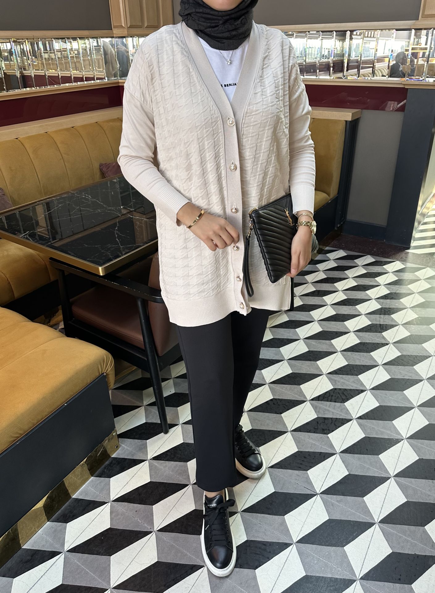 Manken boyu 170 cm, 38 beden ile çekimlerde 1 beden giyildi