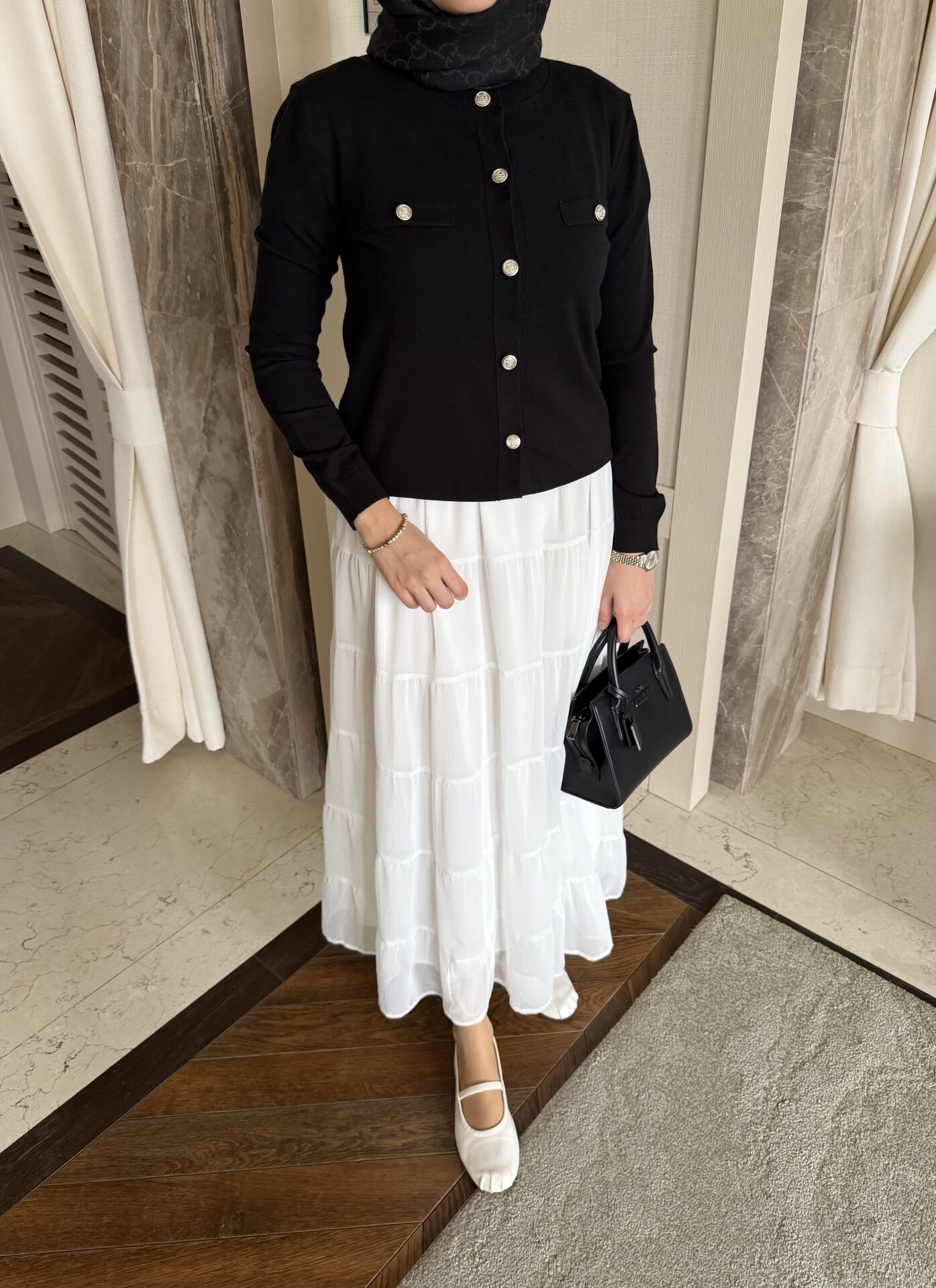 Siyah Renk Metal Düğmeli Hırka